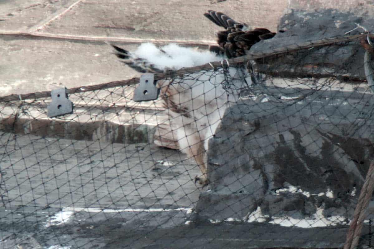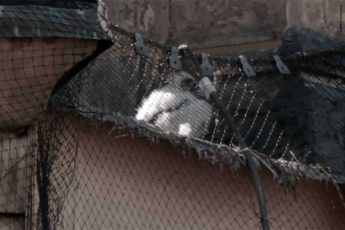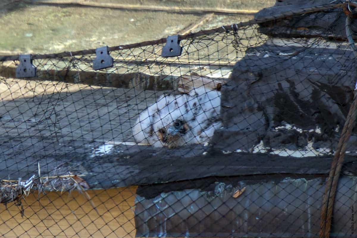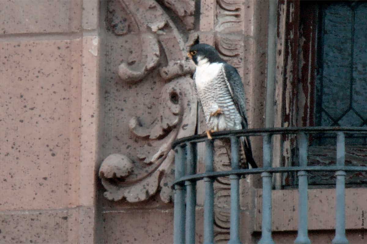 I’ve been waiting for the day, the eyasses (young falcons) could be seen from the street. Last year, I could see them on May 26th. This year, it was today, May 31st. Today, I only saw one, but suspect I’ll see more than one in the upcoming days.