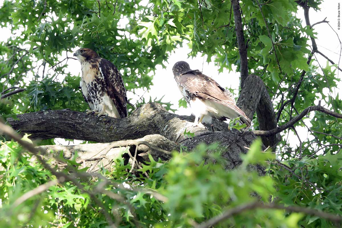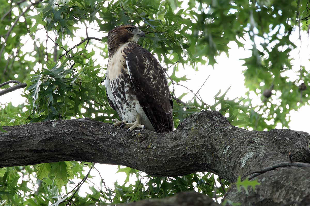 As one would expect, the 93rd Street Fledgling have been expanding their range and are now exploring the area around the Central Park tennis courts. The parents and the fledgling can often be found back near the nest but the are favoring the tennis courts.