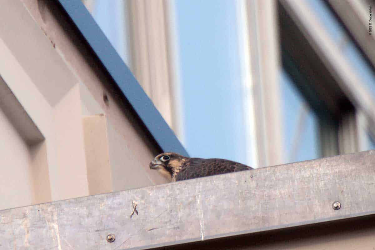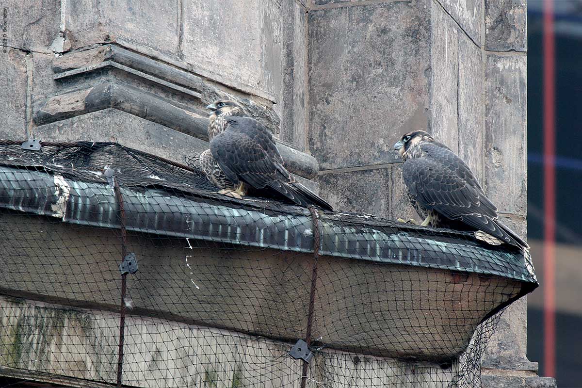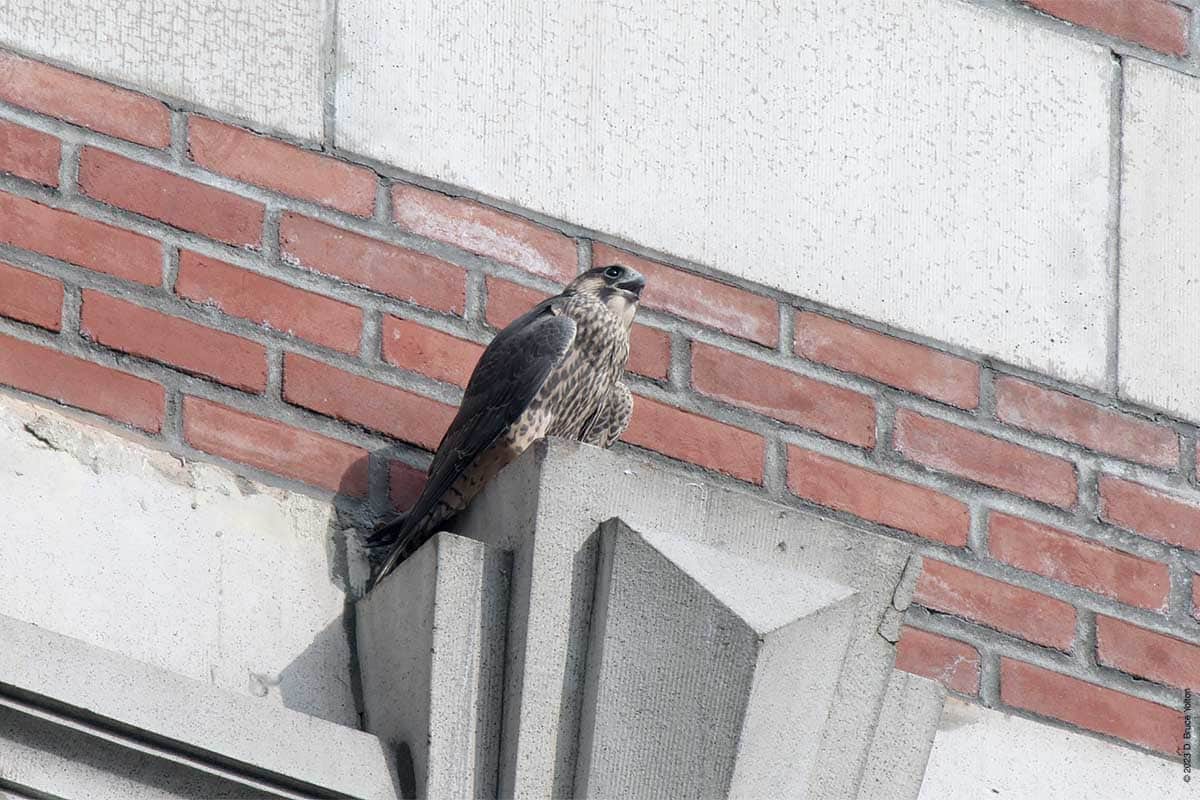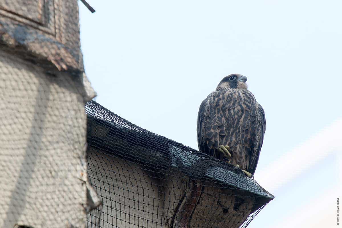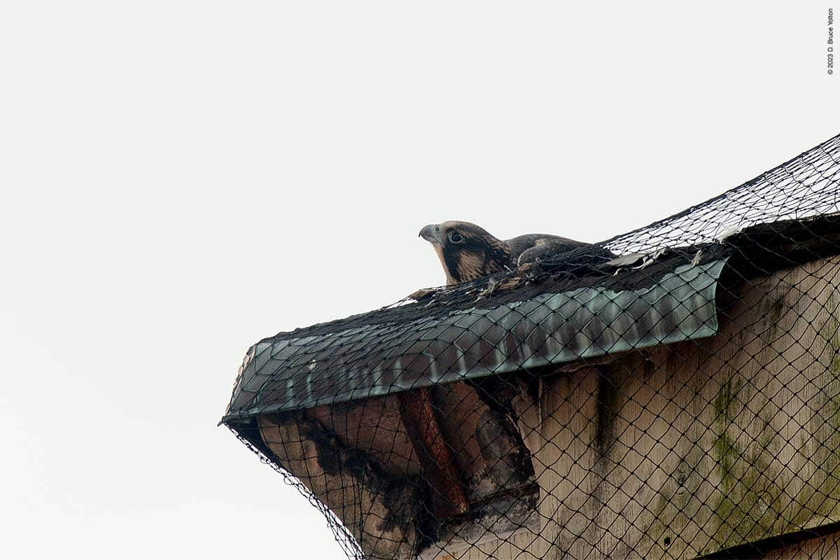 After I packed up my camera, the last youngster to fledge left the eyrie! I had to leave but other say two fledglings eating on 255 West 85th Street and another fledgling chasing pigeons.
