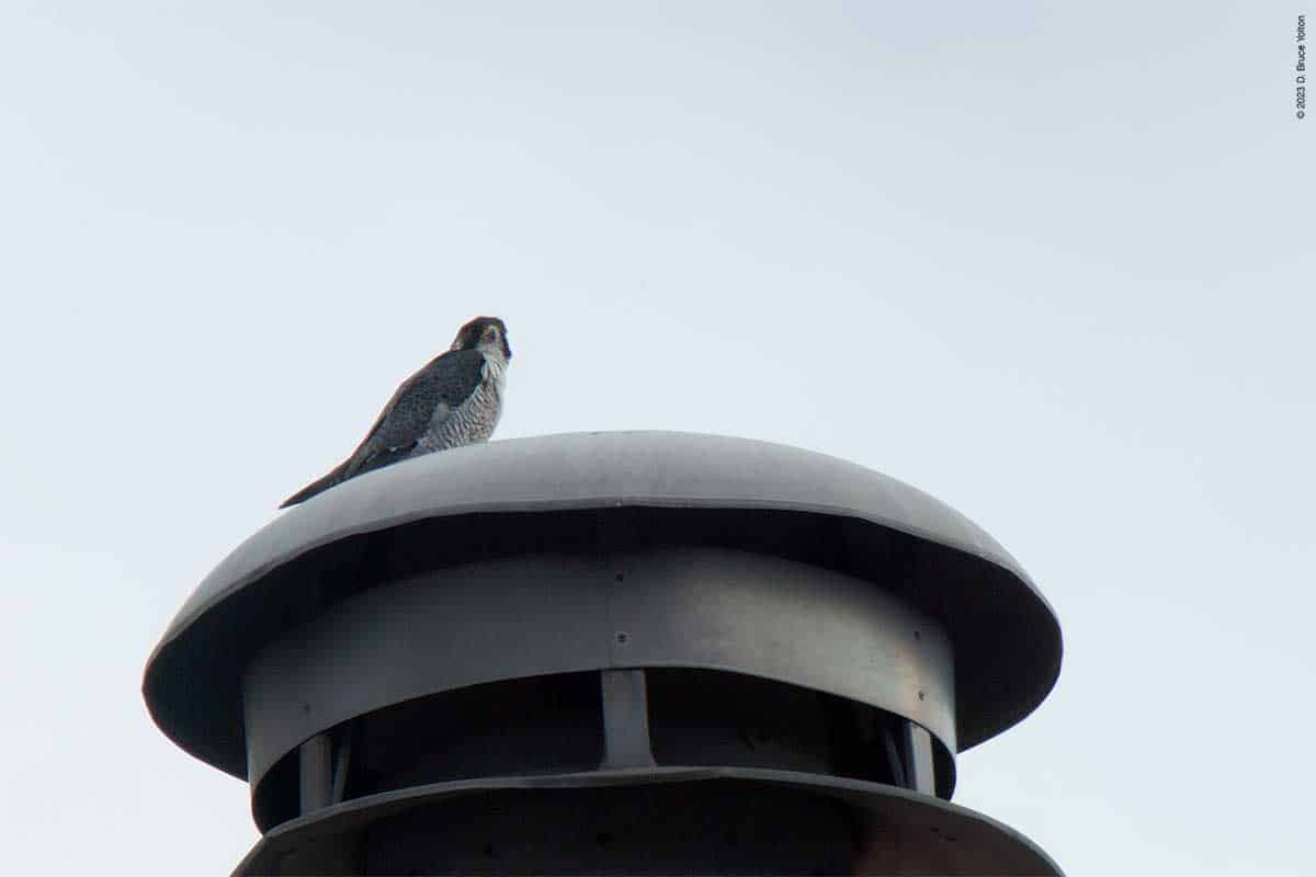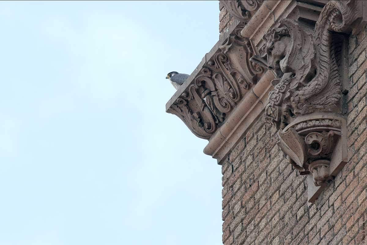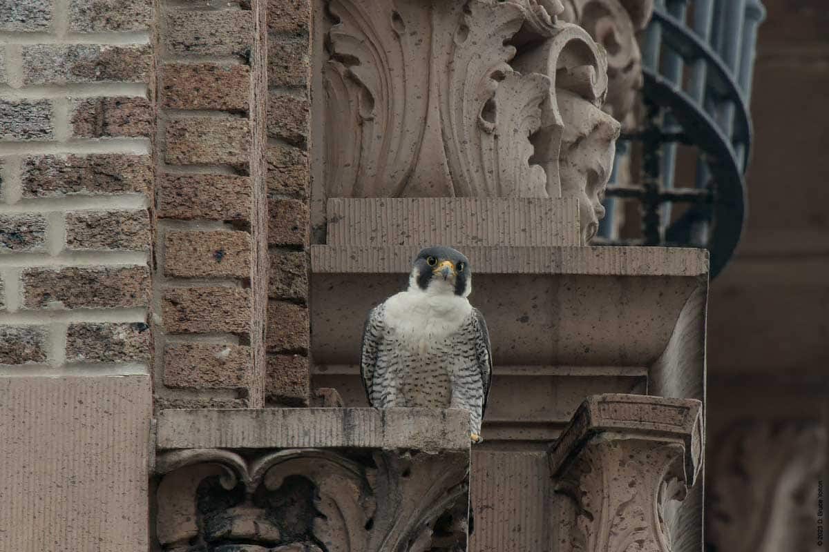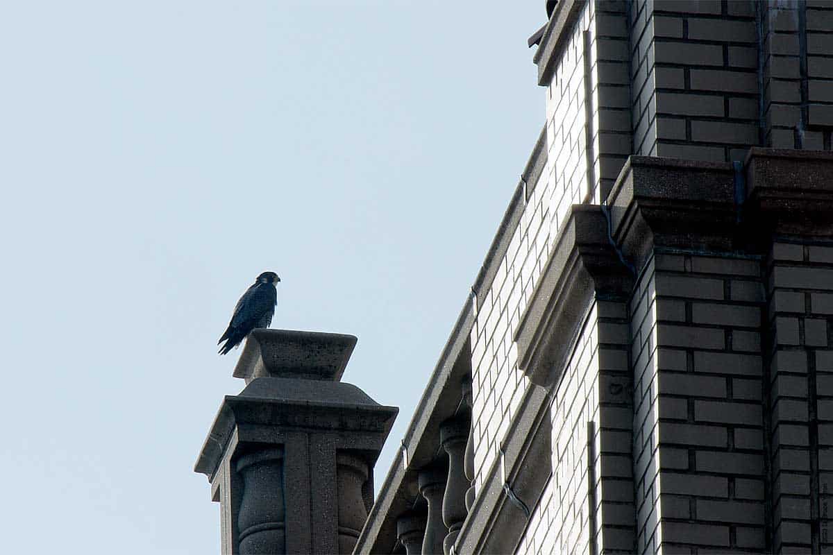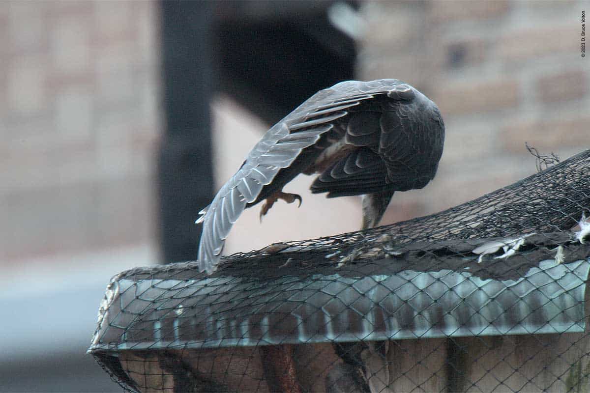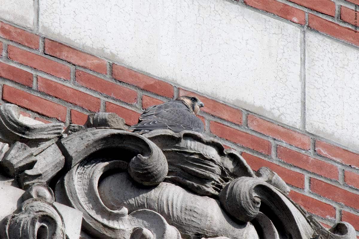 After I packed up my camera, the last youngster to fledge left the eyrie! I had to leave but other say two fledglings eating on 255 West 85th Street and another fledgling chasing pigeons.