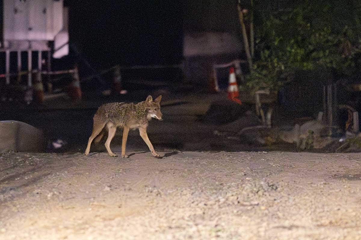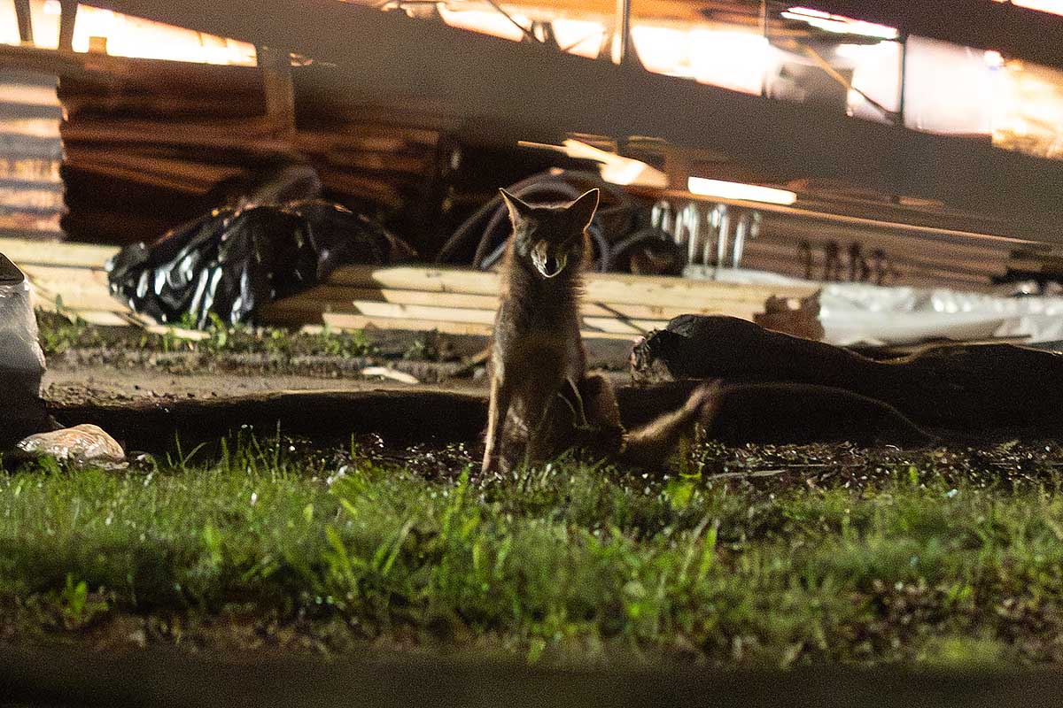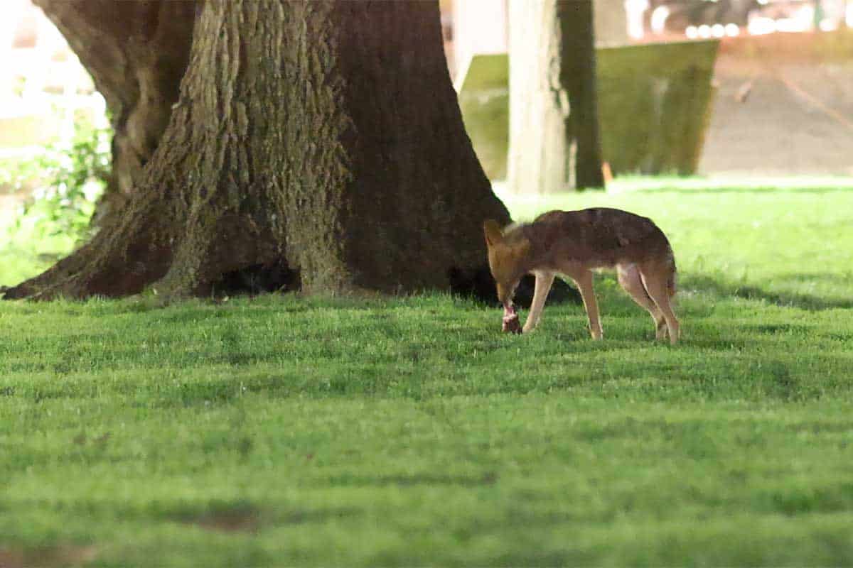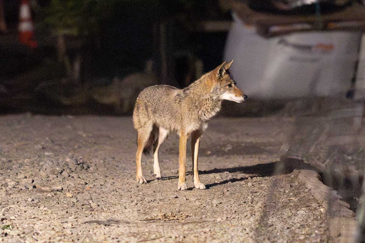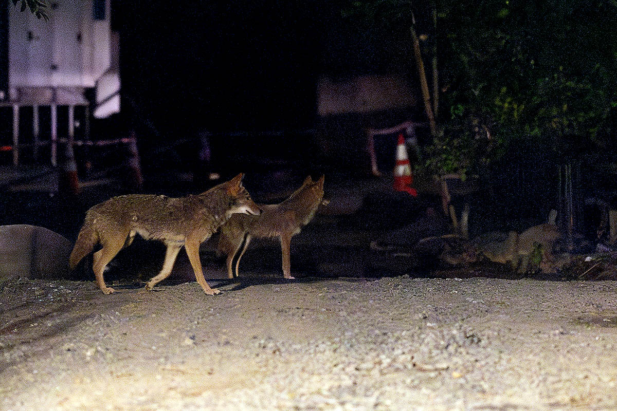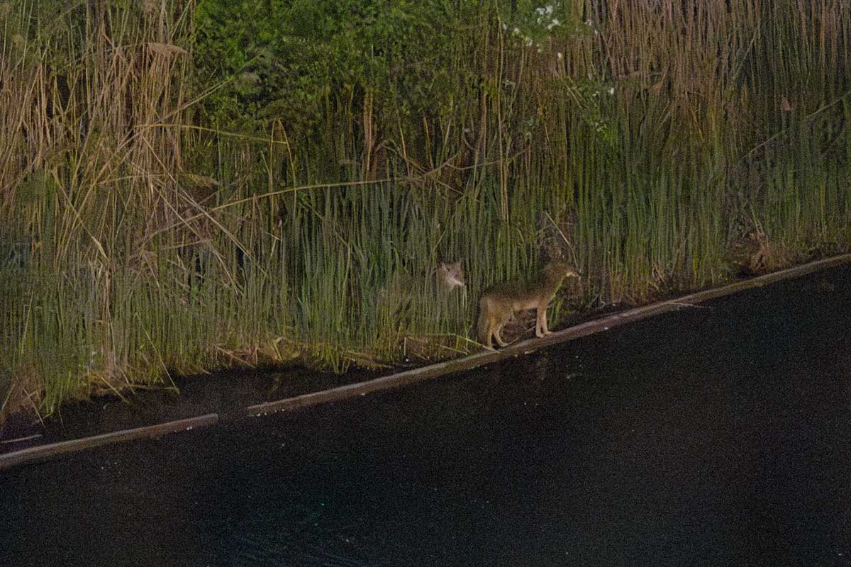 For the coyotes, an individual who leaves high quality fish and meat out for raccoons, has meant that they visit a feeding location nightly. But also about 30 Brown Rats visit the same spot nightly! And this spot is right next to a children’s playground.