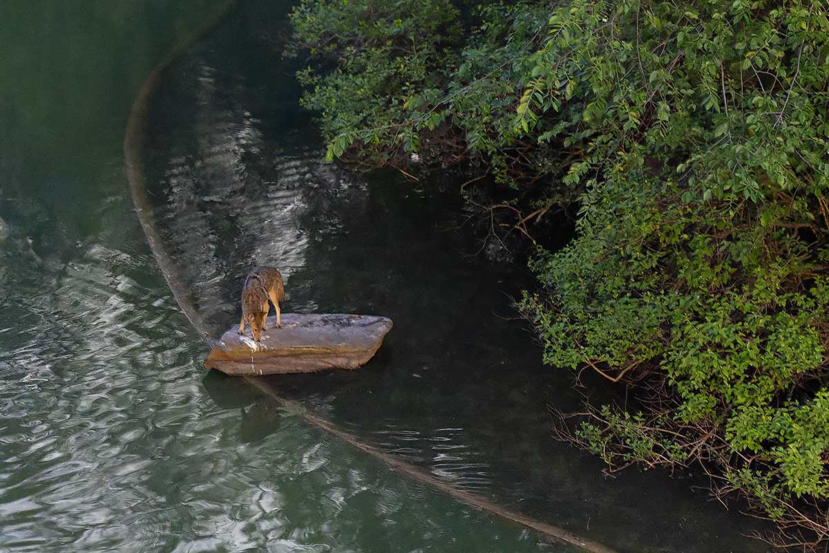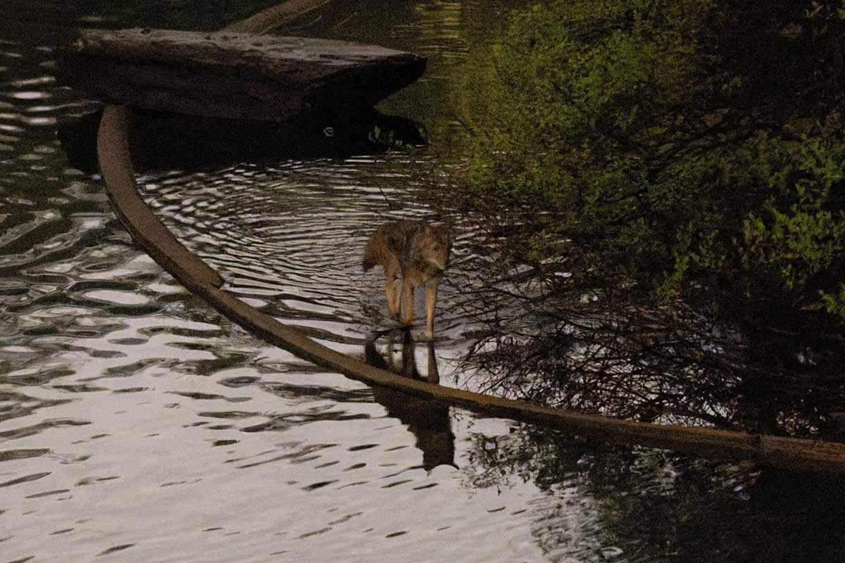 The coyotes have also used one of the park’s islands to sleep on during the day. On the two occasions, I’ve seen them use an island to sleep on during the day. I was only able to hear some splashes as they left the island. Sadly, it’s almost impossible to photograph all of their behaviors. They really know how to stay out of sight and love to stay in the shadows.