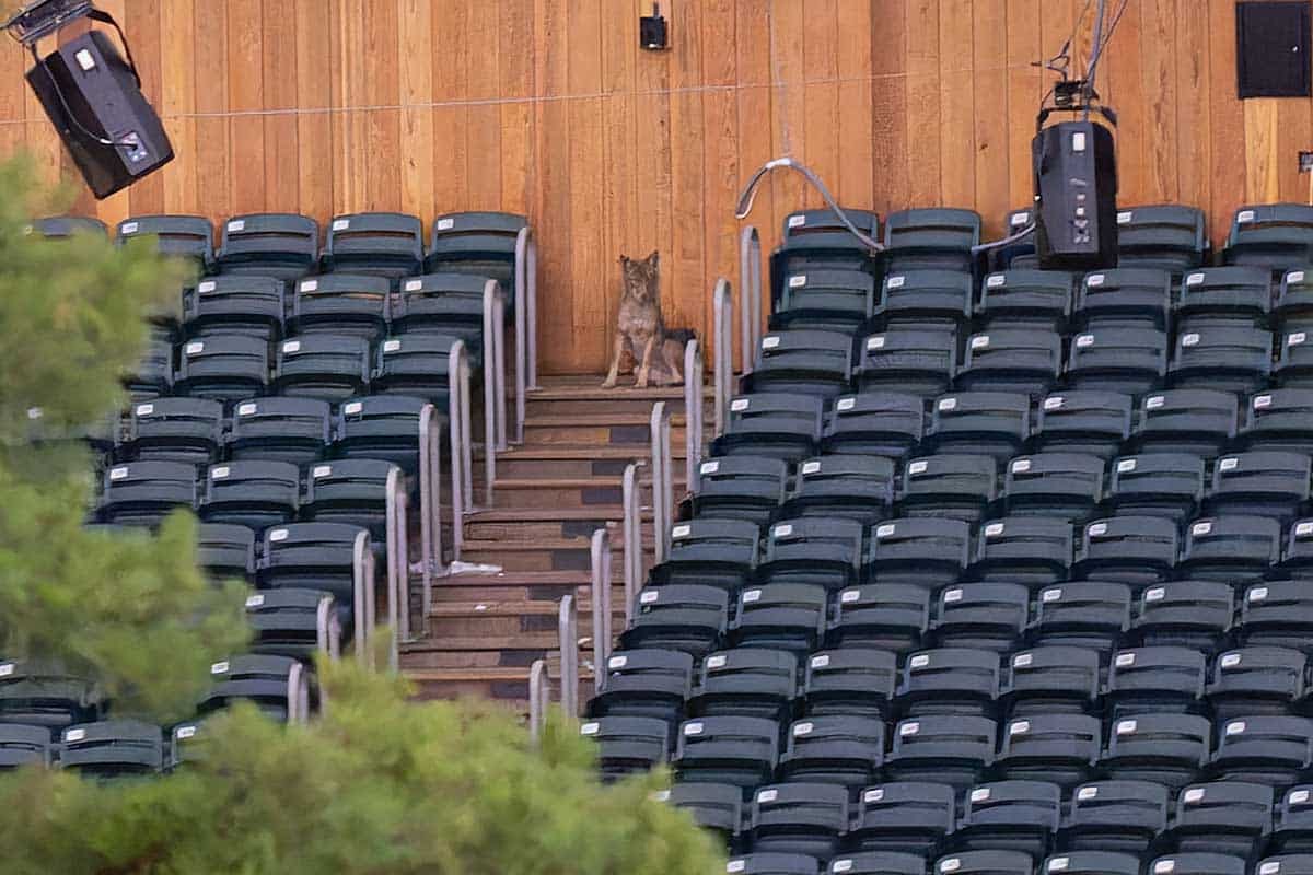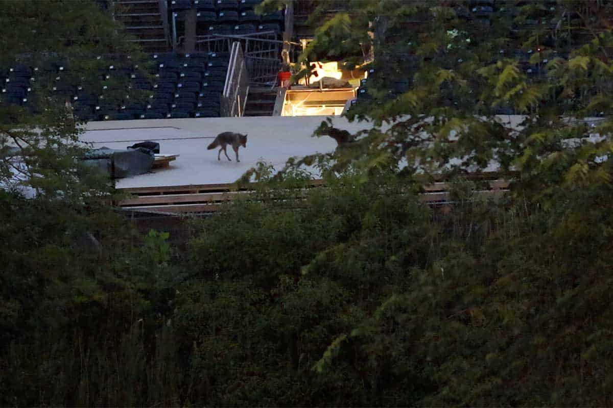 However, I suspect the coyotes will be happy to celebrate the final curtain call, so they can return to using one of their safe havens during the theater’s off season. This pair of coyotes has already been giving some great performances in and around the theater this year! Here are some of them…