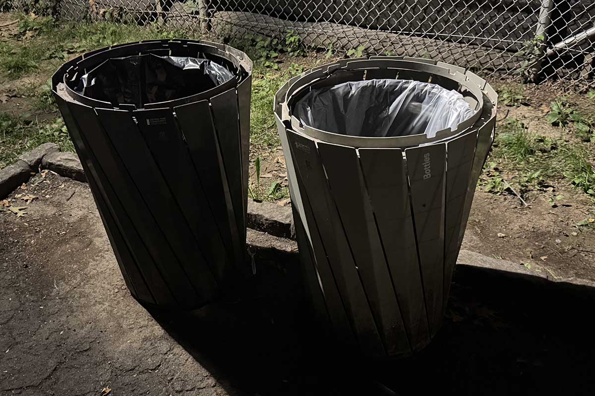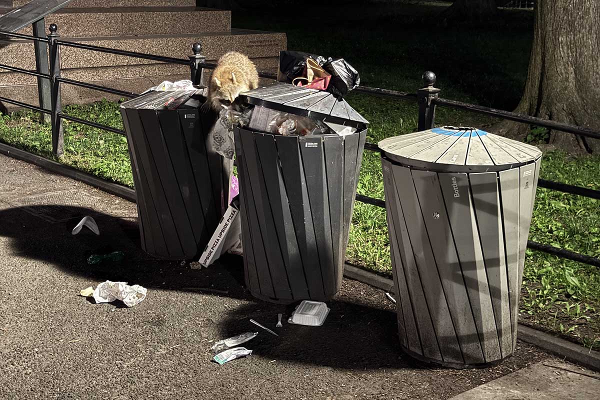 The park’s trash cans simply need to be replaced with more modern trash receptacles that prevent animals from accessing the trash and there need to be enough of them to prevent trash from overflowing on busy days. Walking through the park at night and you’ll see families of raccoons jumping in and out of the trash cans. The raccoons often pull out food containers, spilling the food and then feeding nearby rats. The receptacles don’t need to be “bear proof”, just raccoon and rat proof.