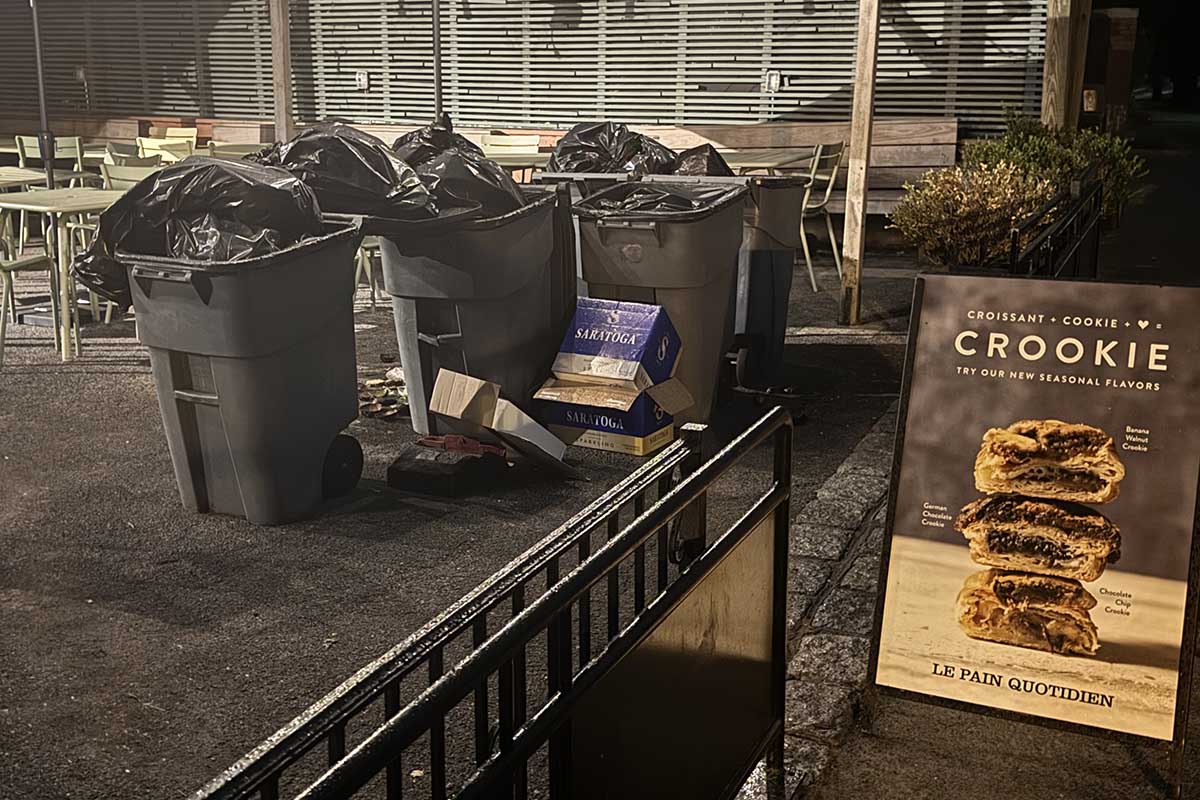 Some of the restaurants, simply don’t have enough containers. This is the case with the Le Pain Quotidian at Mineral Springs (just north of Sheep Meadow). NYC law requires restaurants to have enough containers to handle 72 hours worth of waste.