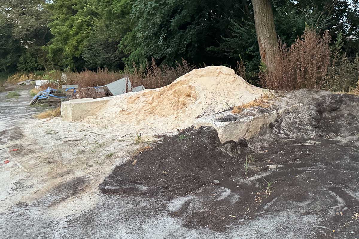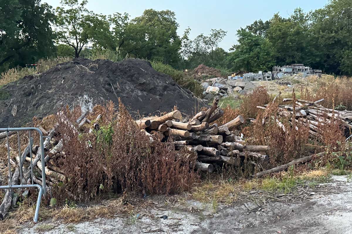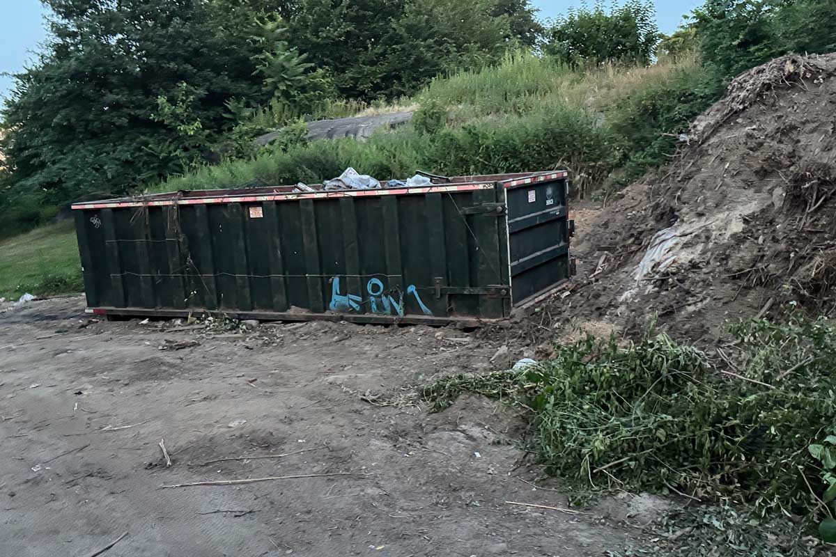 I’m including some pictures below, not only of the dumpsters, but of the leftover construciton materials at The Mount. The area truly is an embarrassment. The remaining construction material included a mountain of large boulders left over from the restoration of the stream from The Loch to The Meer.