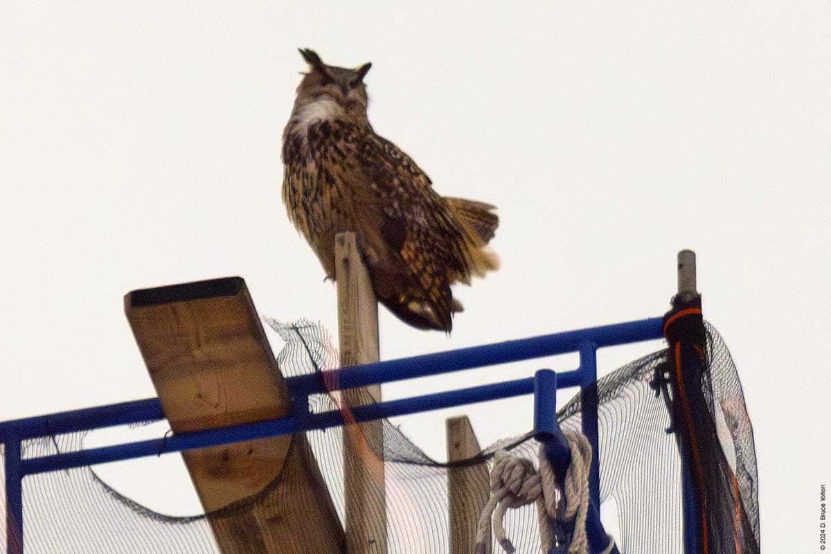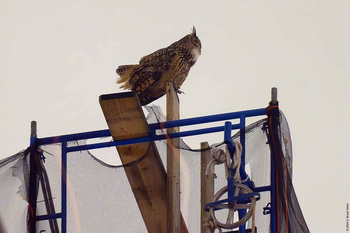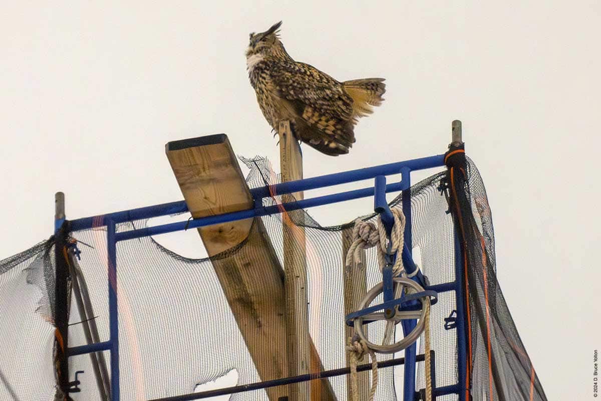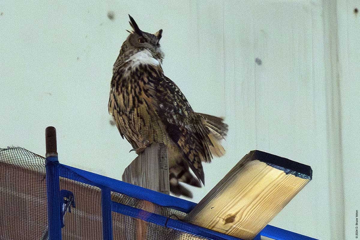 Flaco is already a risk to native wildlife, and certainly would be if he had a mate, so it would be inappropriate to release a female Eurasian Eagle-Owl to join him. And of course if he bred, the offspring would be forced to mate with their siblings. So, introducing another owl isn’t a solution. (And for those thinking of introducing an infertile female owl might be a solution, even an infertile pair would be aggressive towards native wildlife, especially Peregrine Falcons.)