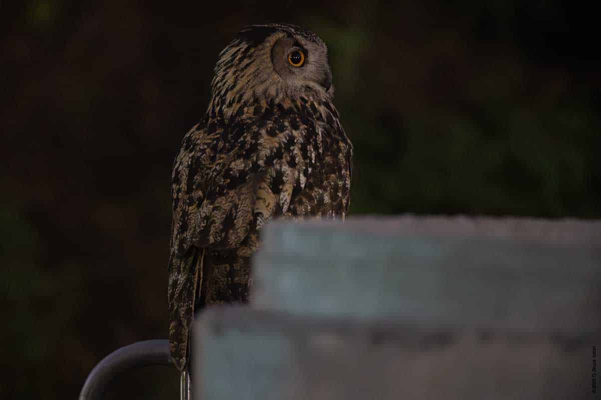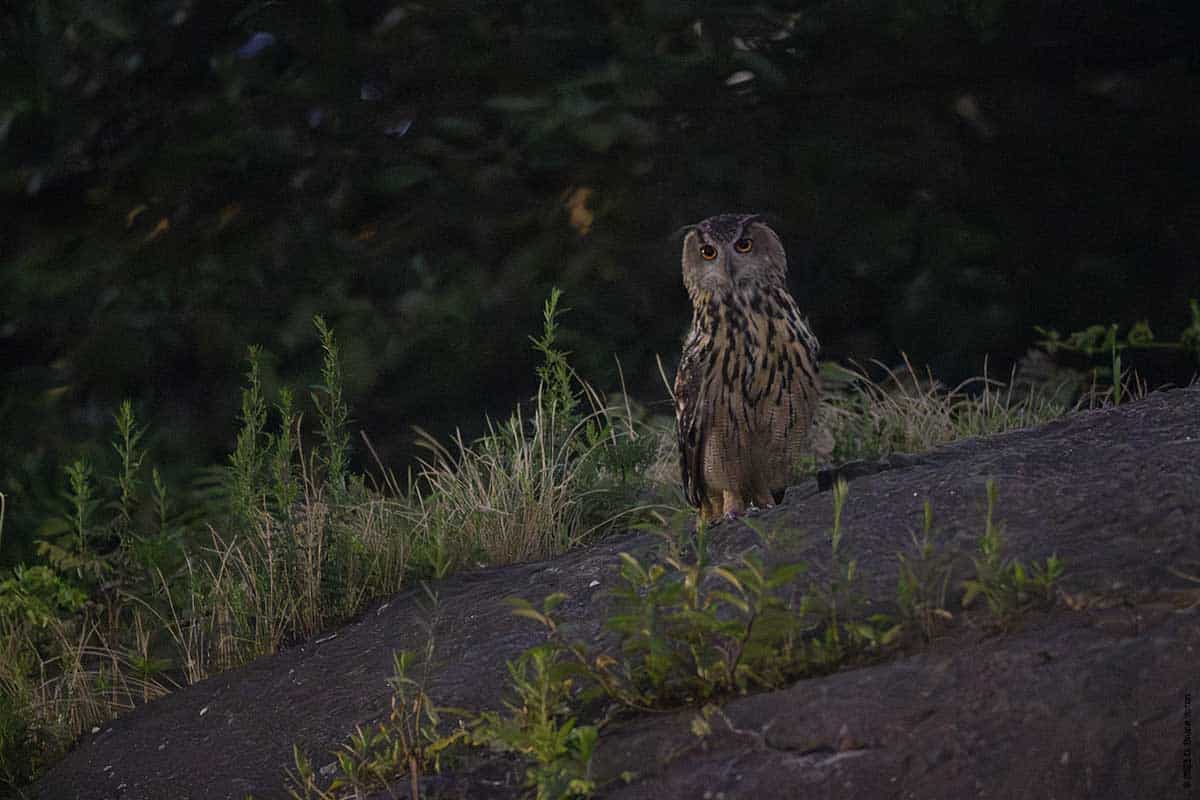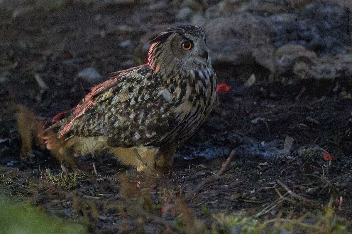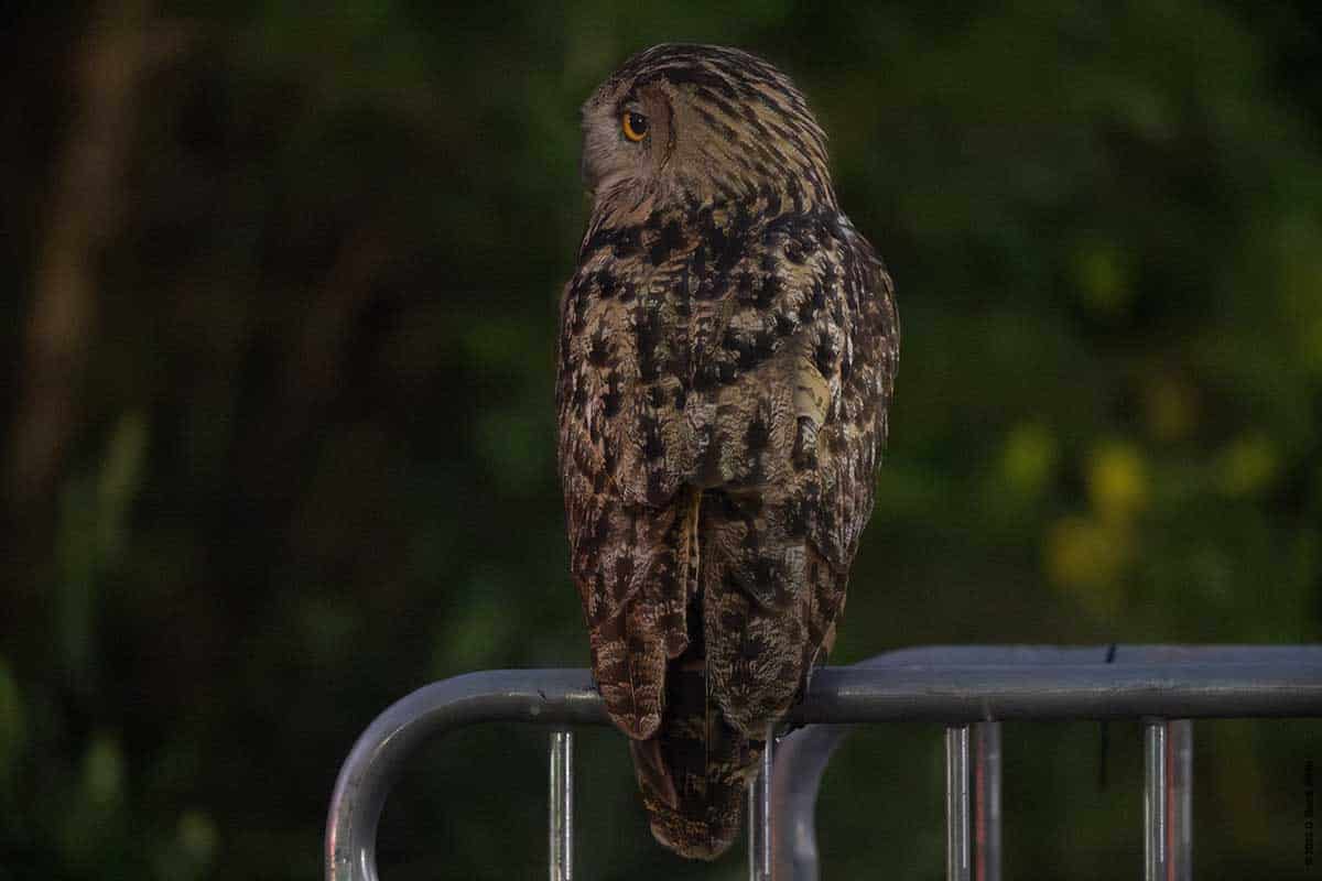 On Wednesday evening, a few of us got some great looks at Flaco as he flew around landing on dumpsters, a concrete pipe, and various trees and perches including a few on the ground. But most surprising was his jumping into a puddle and taking a drink. This was the first time I had seen him in water.