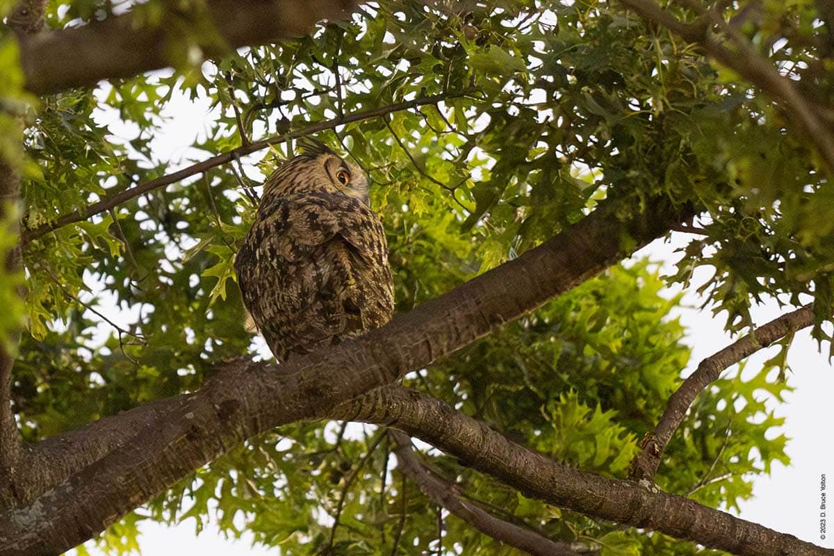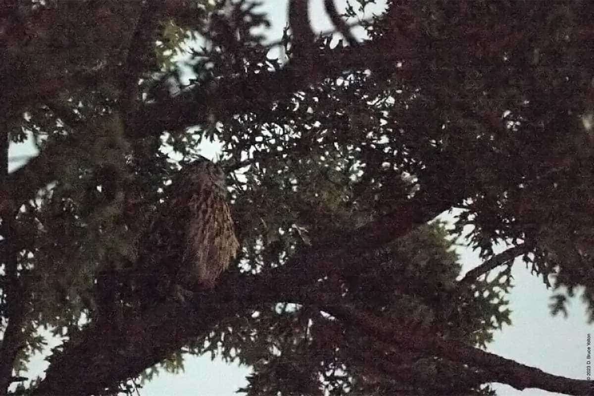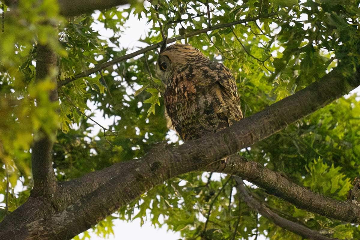 Flaco’s been rushing north after fly out the last week. He did this again on Wednesday night. He went north to the compost heap and then further north to a tree along the East Drive. We saw him move and then thought he had go to the construction site along the south shore of the Harlem Meer, but it turned out he had just moved within the tree. We only relocated him because he hooted.