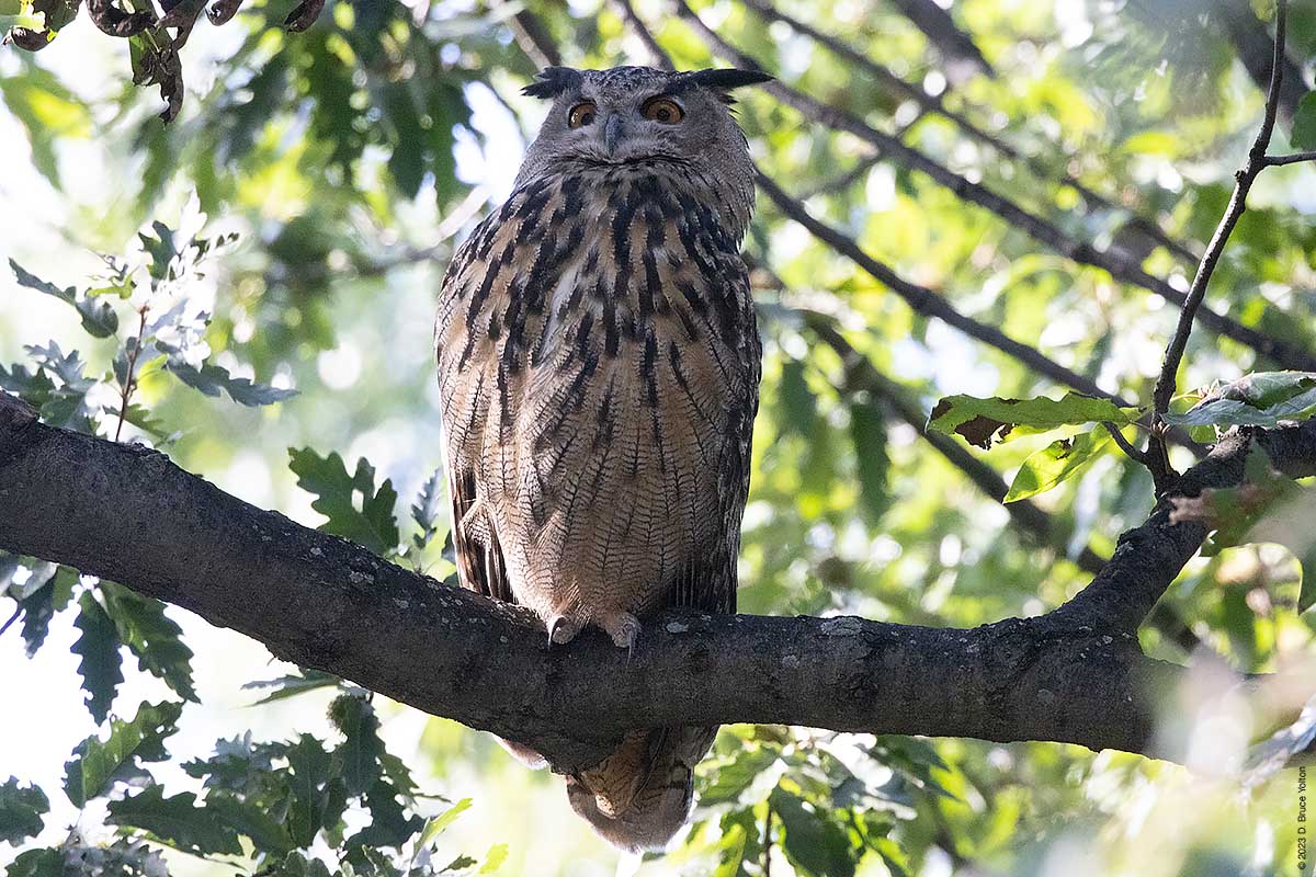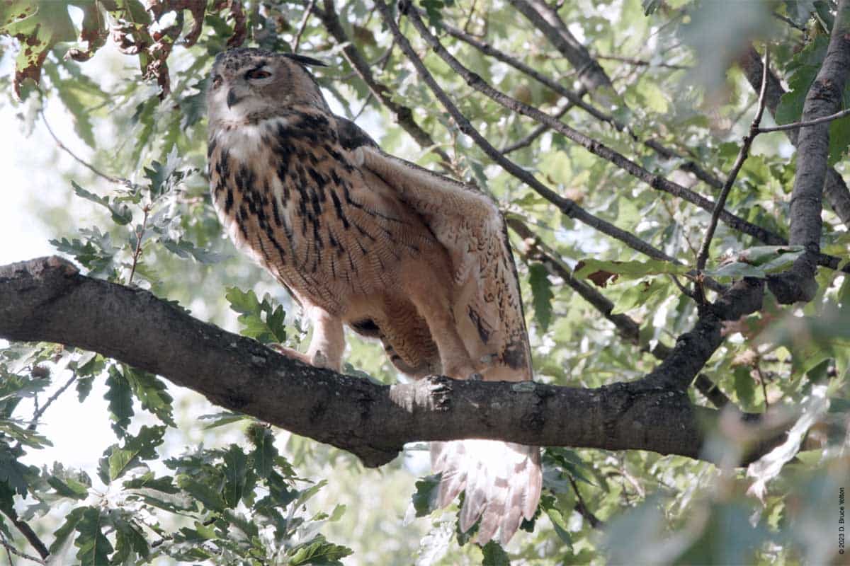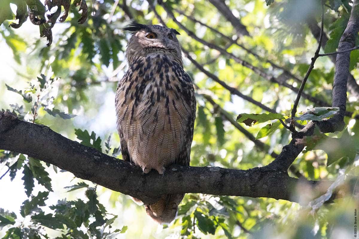 In the afternoon, he was a stop before I went to see the two Green-winged Teals that were on The Pool with a group of newly arrived Gadwalls. He was comfortable roosting in an oak tree. Construction has started on the Recreation Center, and this might be changing his choice of roosting locations.