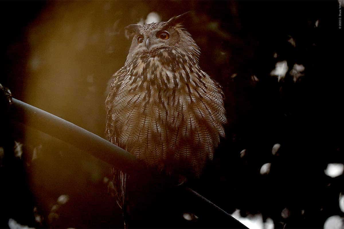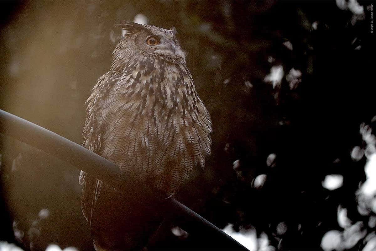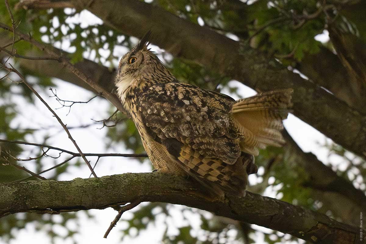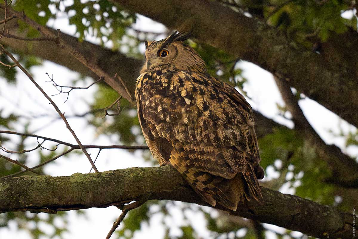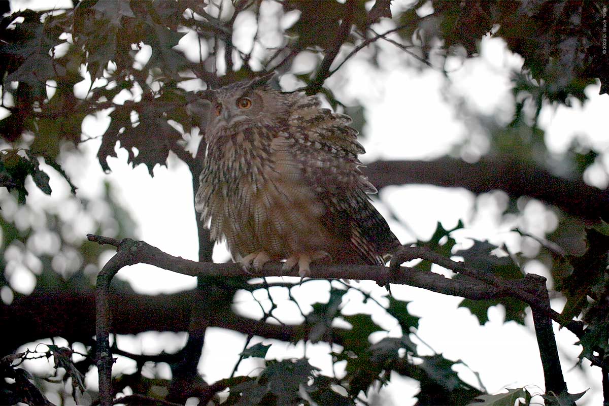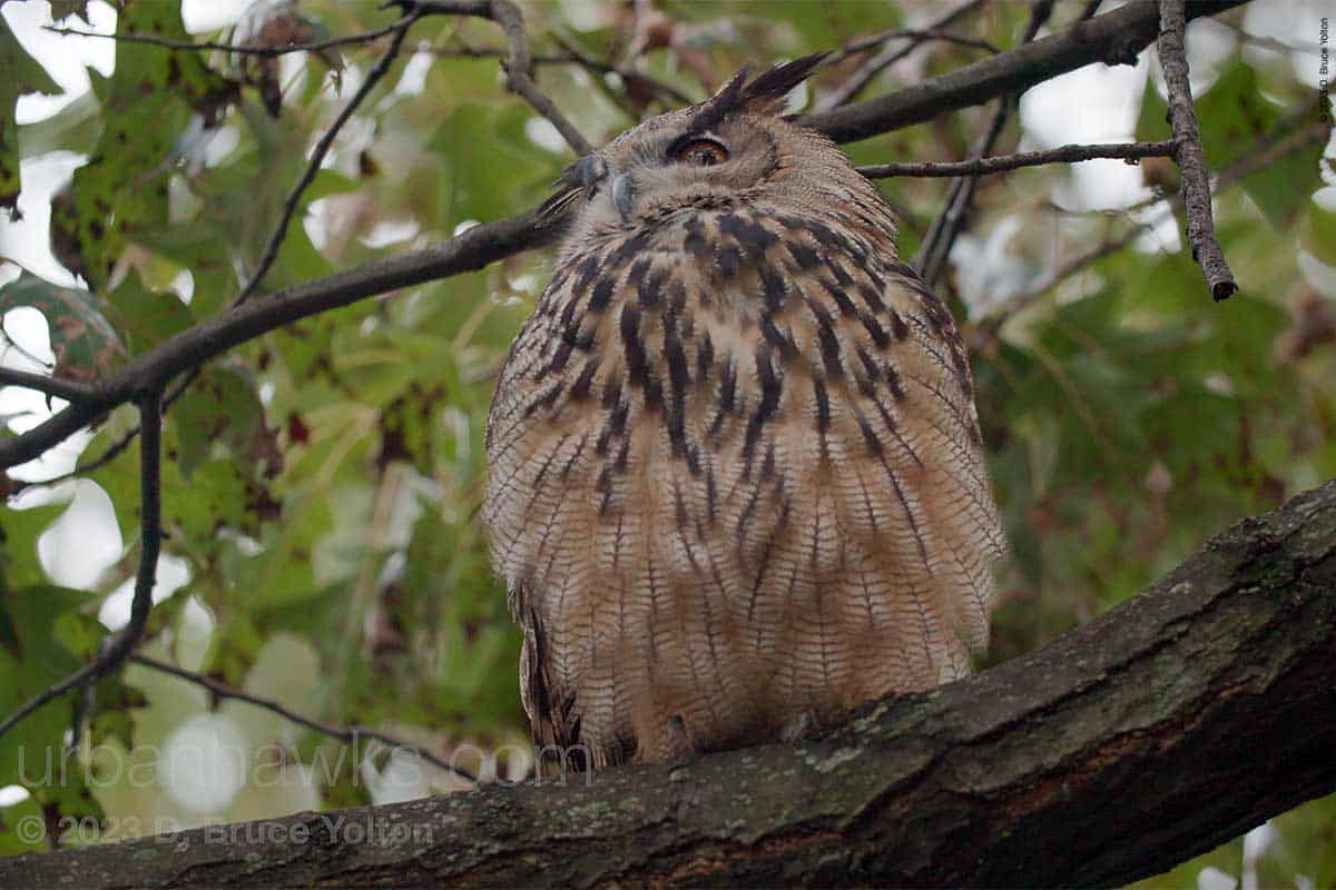 The night watchman disturbed him and he flew out of the building and around the construction site. He ended up just north of Nutter’s Battery and hooted for over an hour. Eventually, he flew south and we could not relocate him.