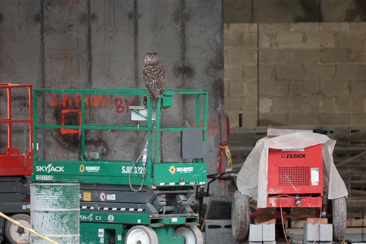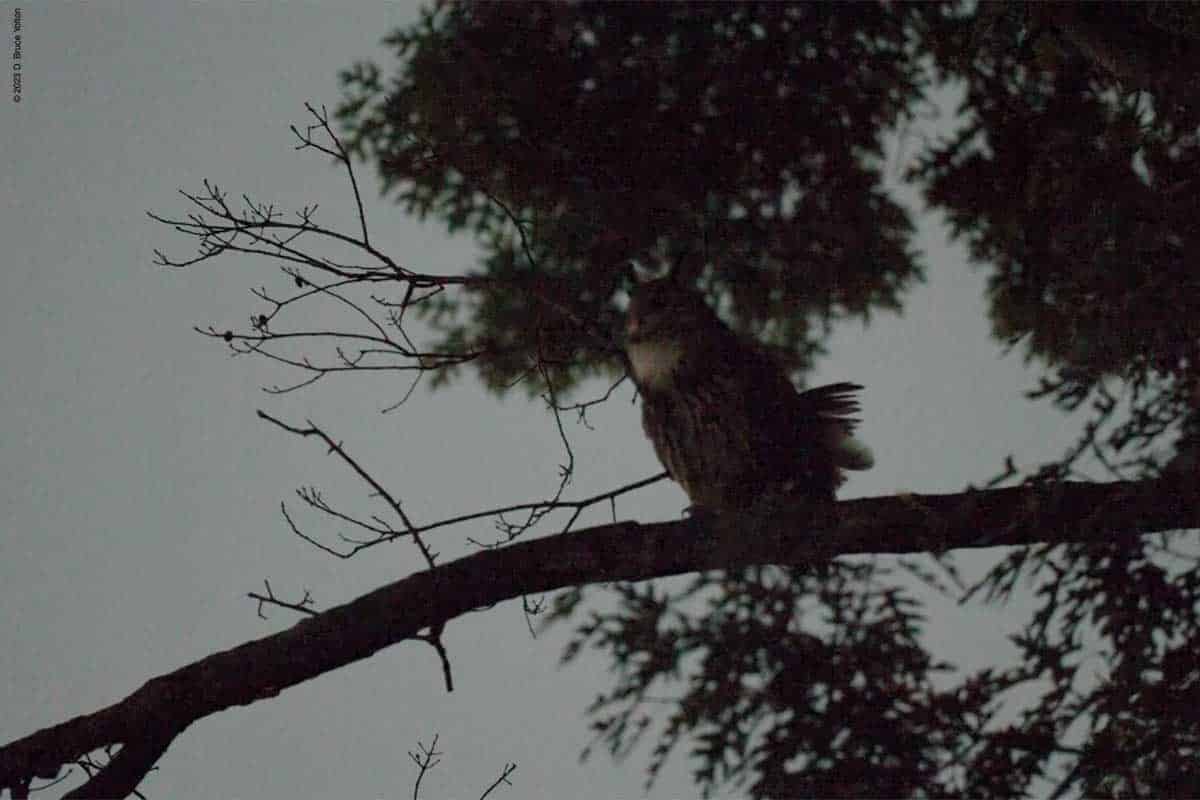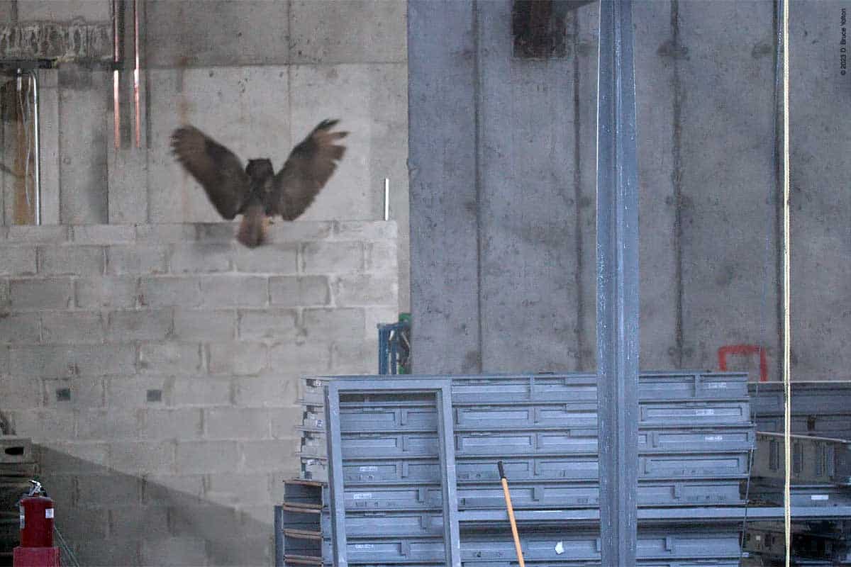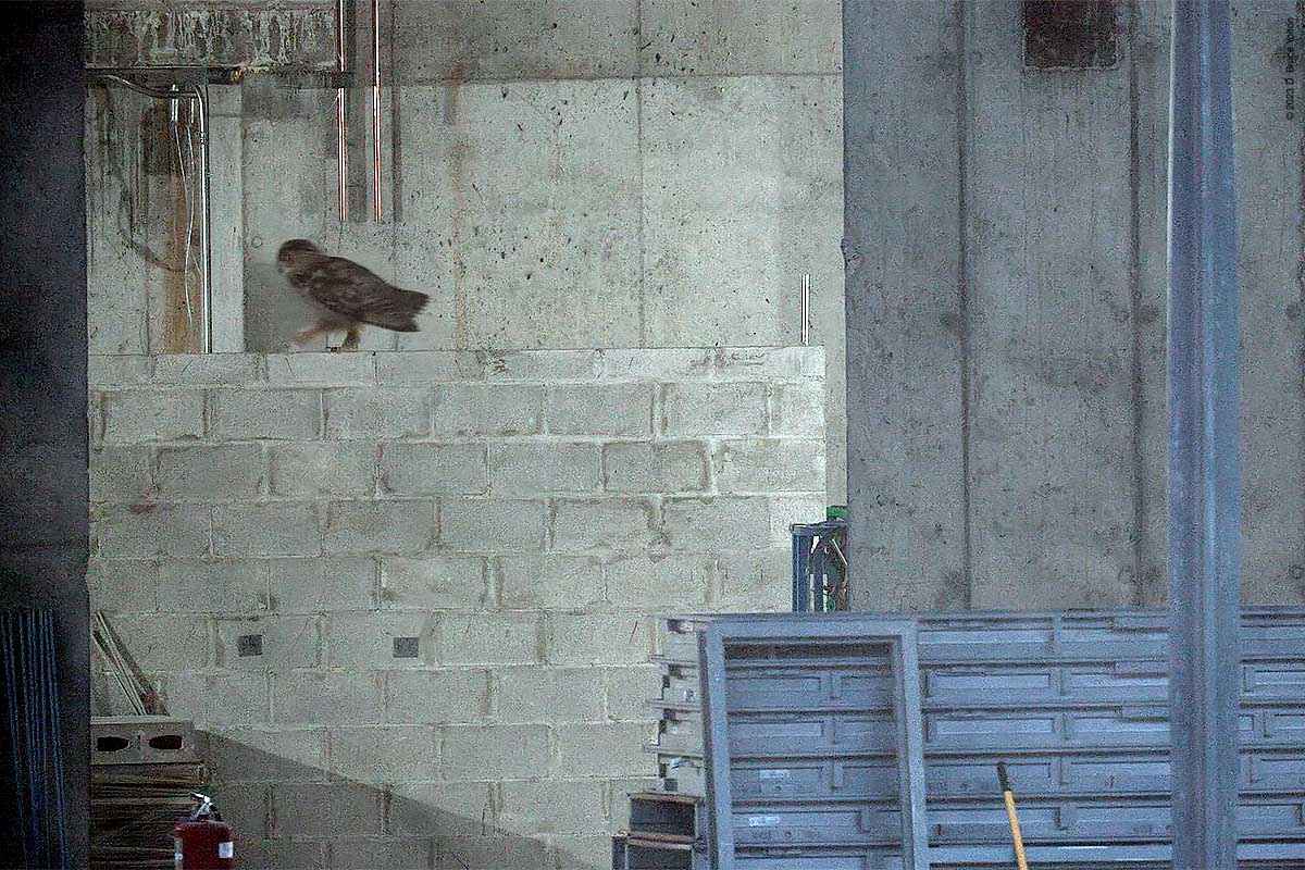 Tonight, was like many nights recently. A nice calm fly out, a visit to construction and then an extended stop at Nutter’s Battery hooting. Unlike previous nights, I did get to see Flaco early enough that I got to see his full visit to the construction site.