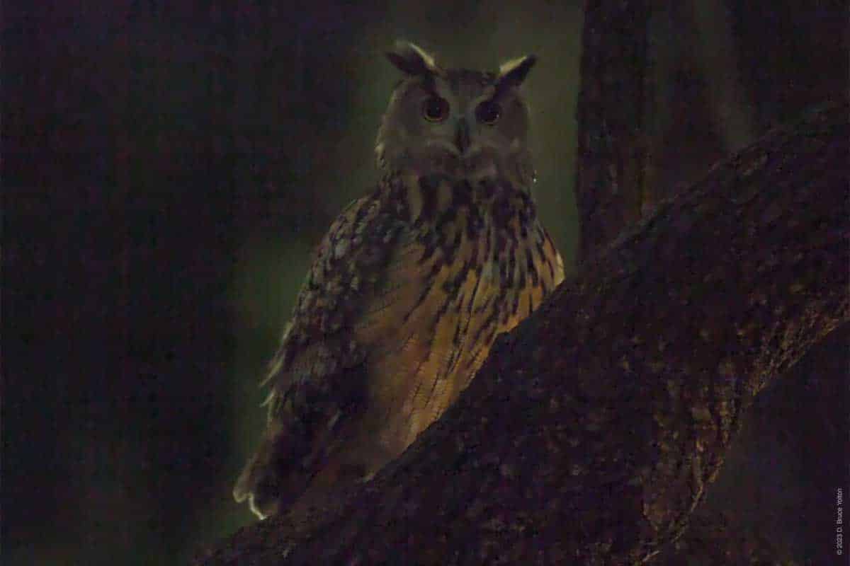 He then relaxed and even close his eyes for a few minutes. After the long evening of Saturday night, I went home. However two other owl watchers stayed to see if he would continue hunting.
