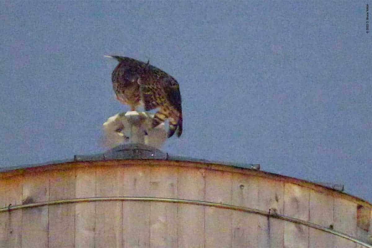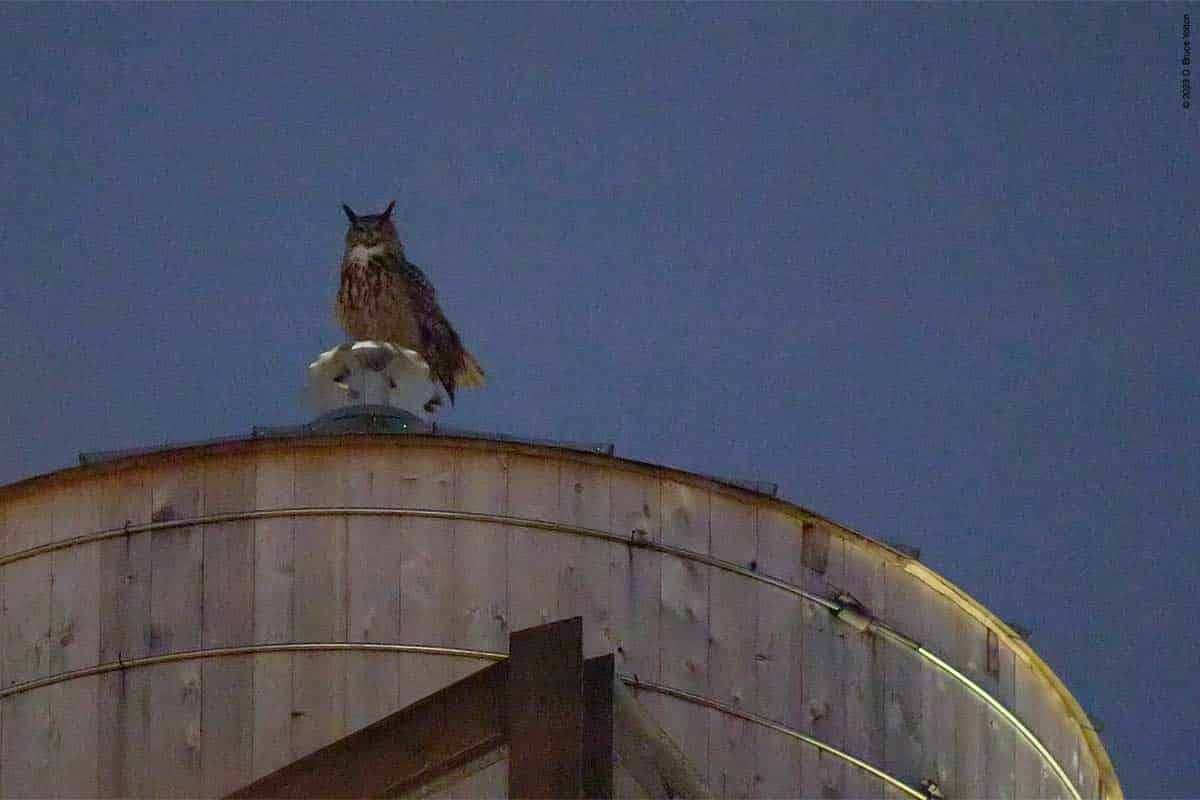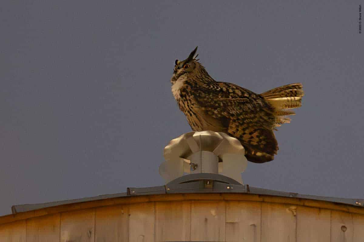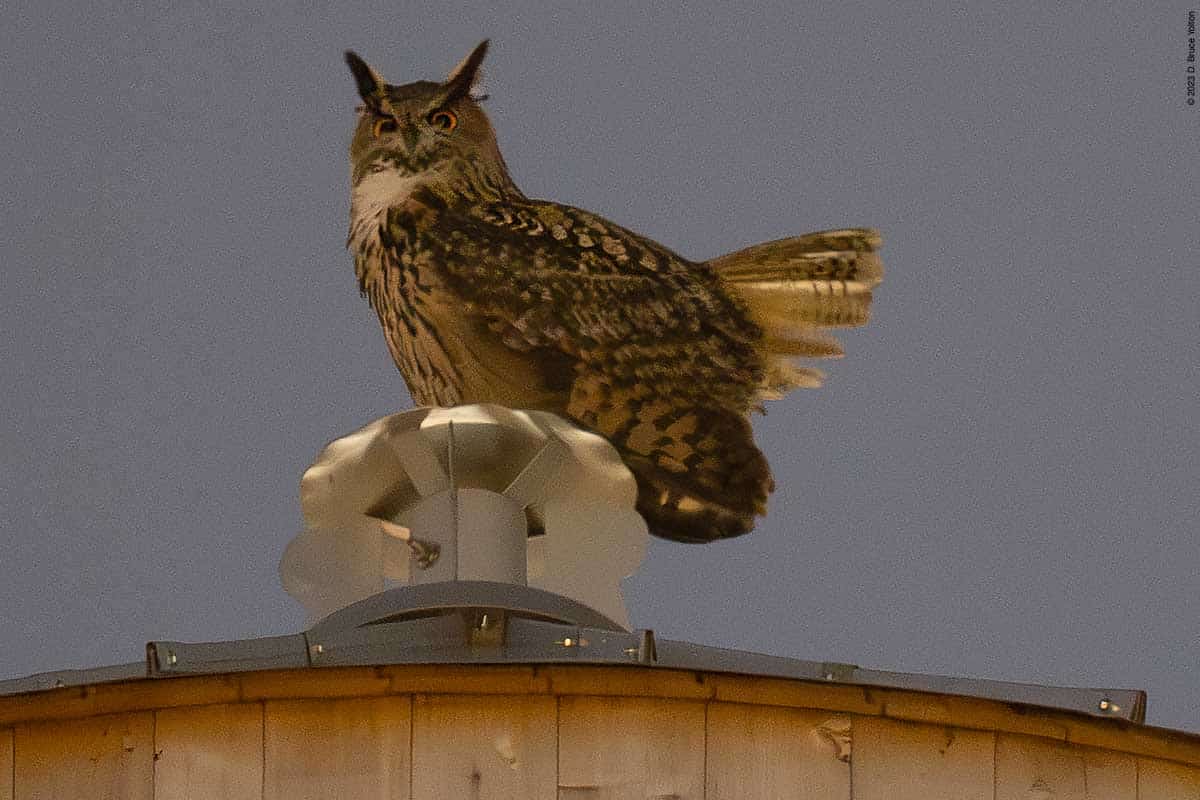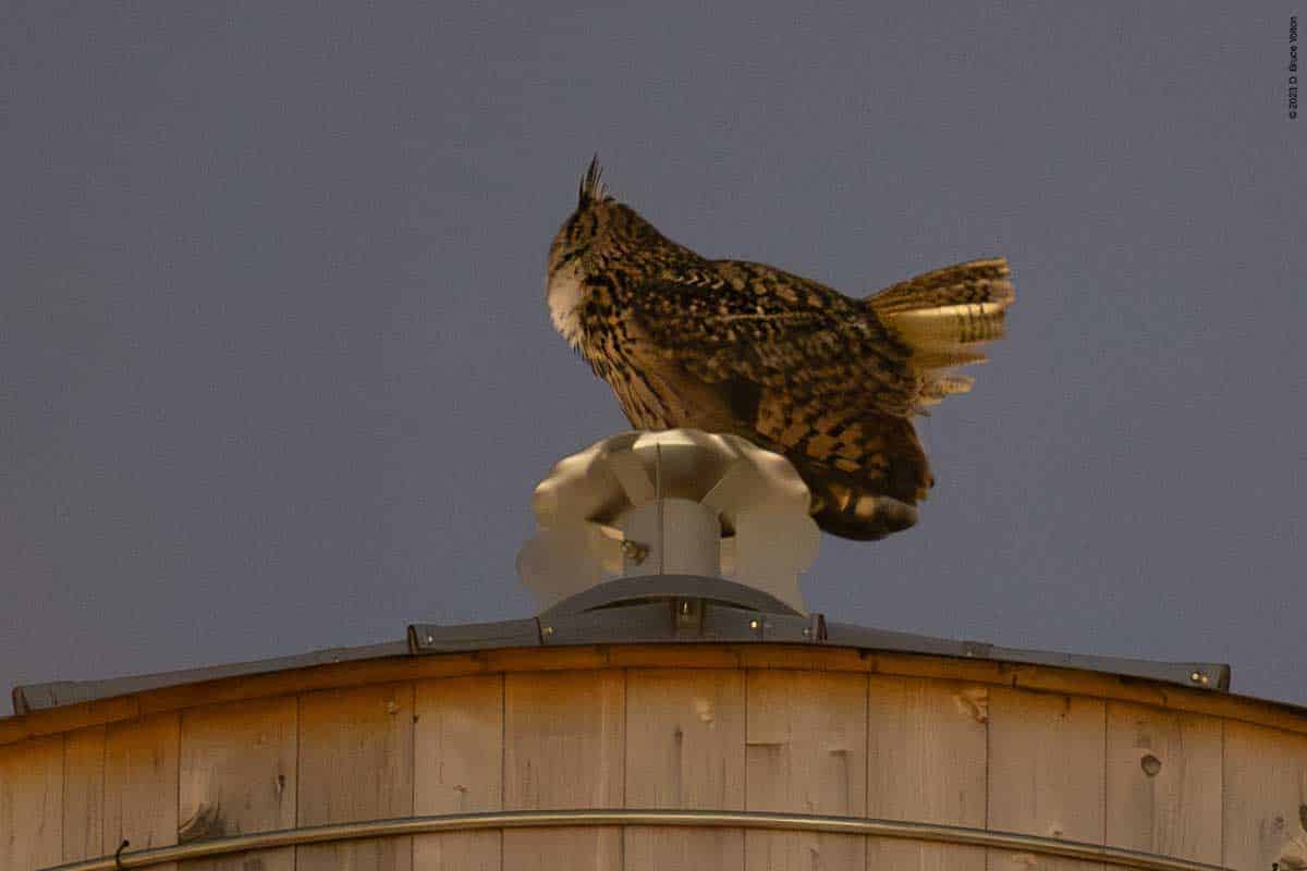 After many hours of walking around the Upper East Side this last week, I finally was able to catch up with Flaco thanks to Bird Twitter. He was hooting at 90th and Riverside Drive tonight. He mostly faced west, but would occasionally look in other directions. Looking at him stretch, it looks like he has lost two primary feathers on his right wing.