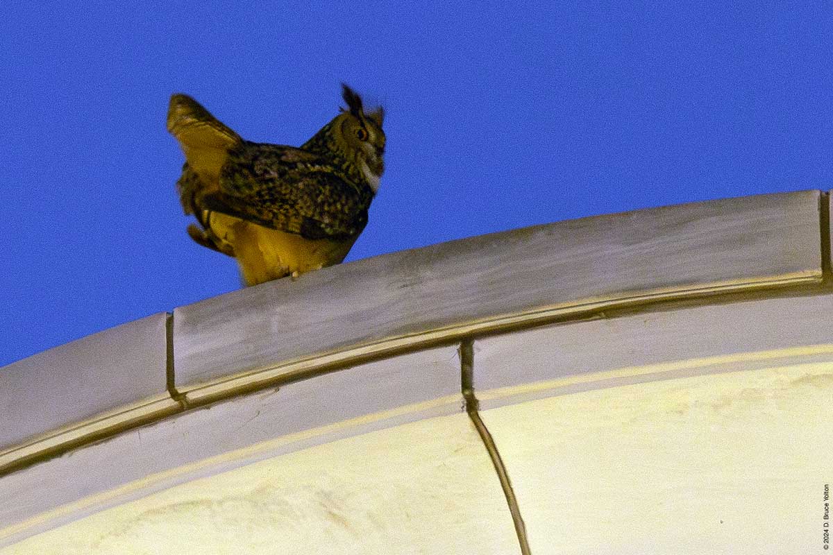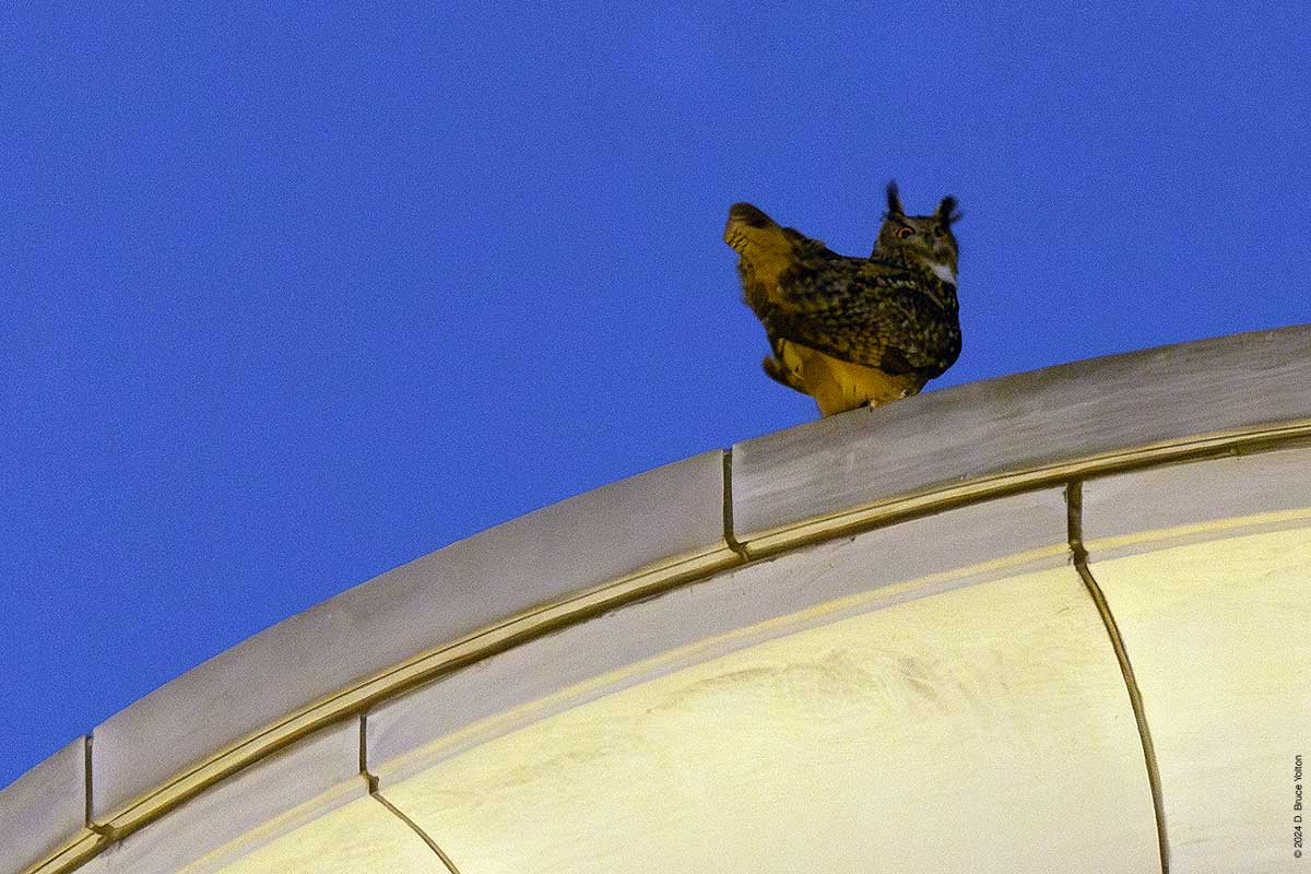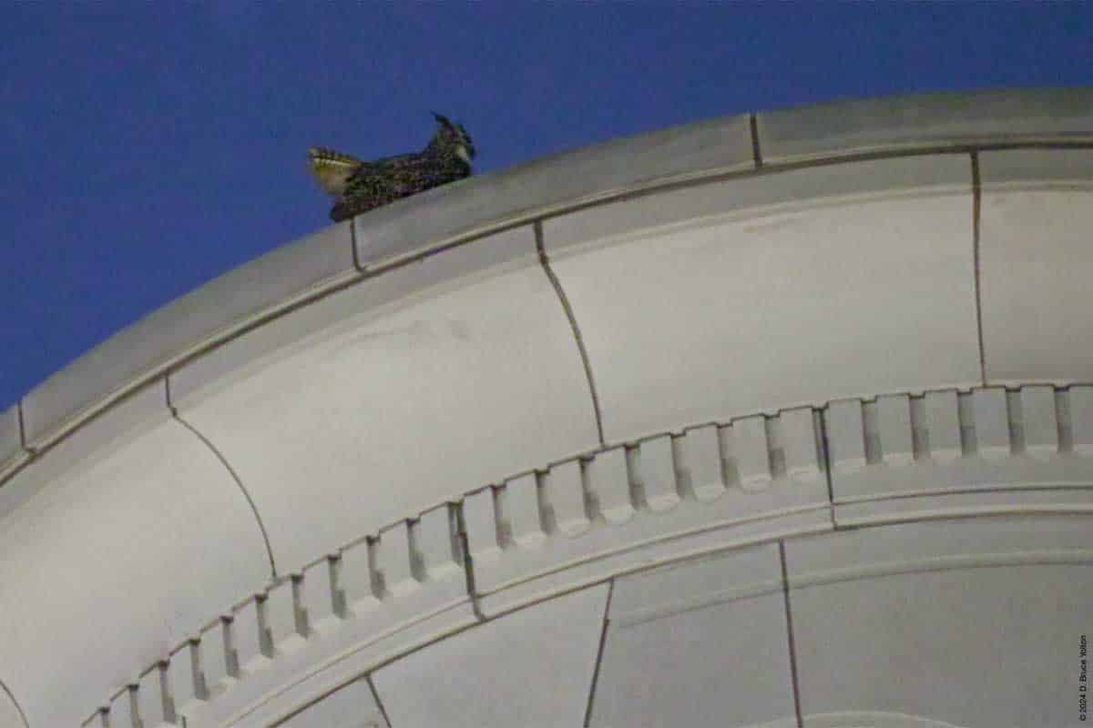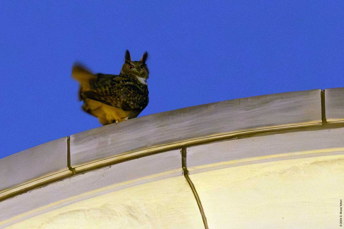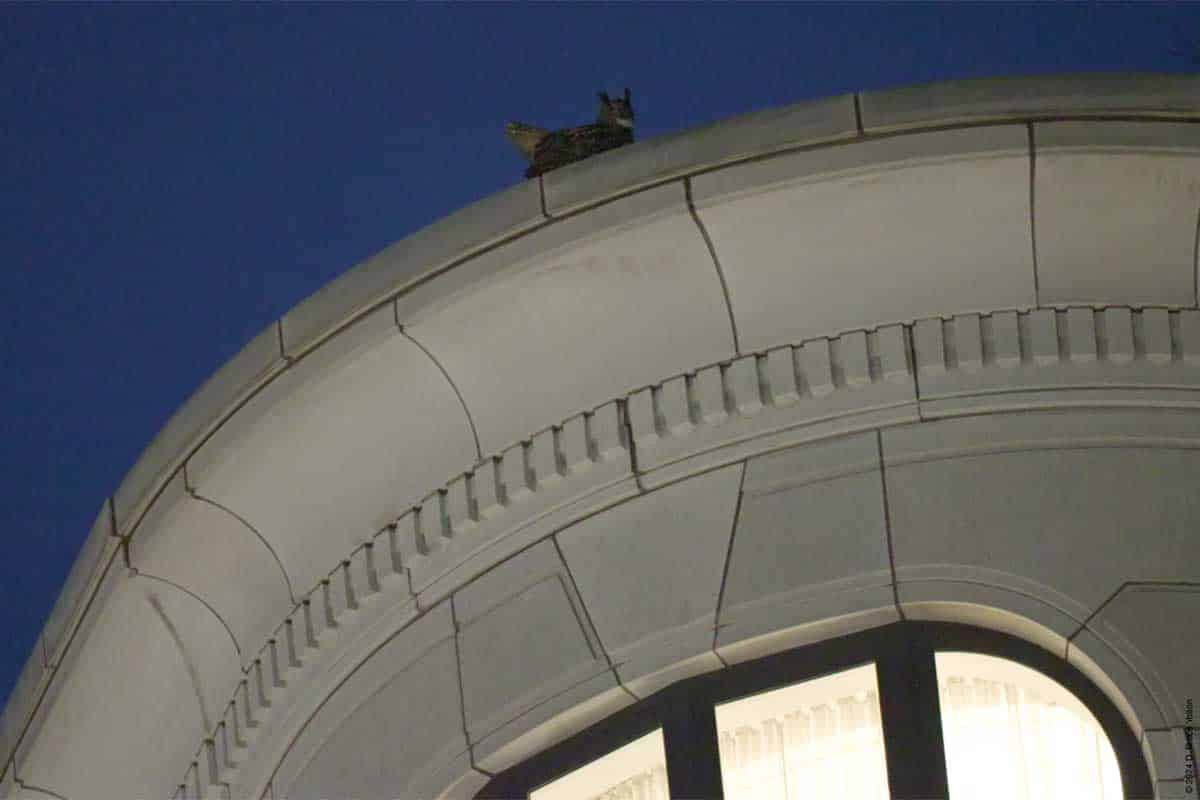 Both of these perches have a direct view of the Peregrine Flacon scrape at 86th and West End Avenue. His hooting at this location is a cause of concern. Eurasian Eagle-Owls are known to take over Peregrine Falcon nests in Europe and this has always been a concern with Flaco. (A paper from Germany discusses these issues in great detail.)