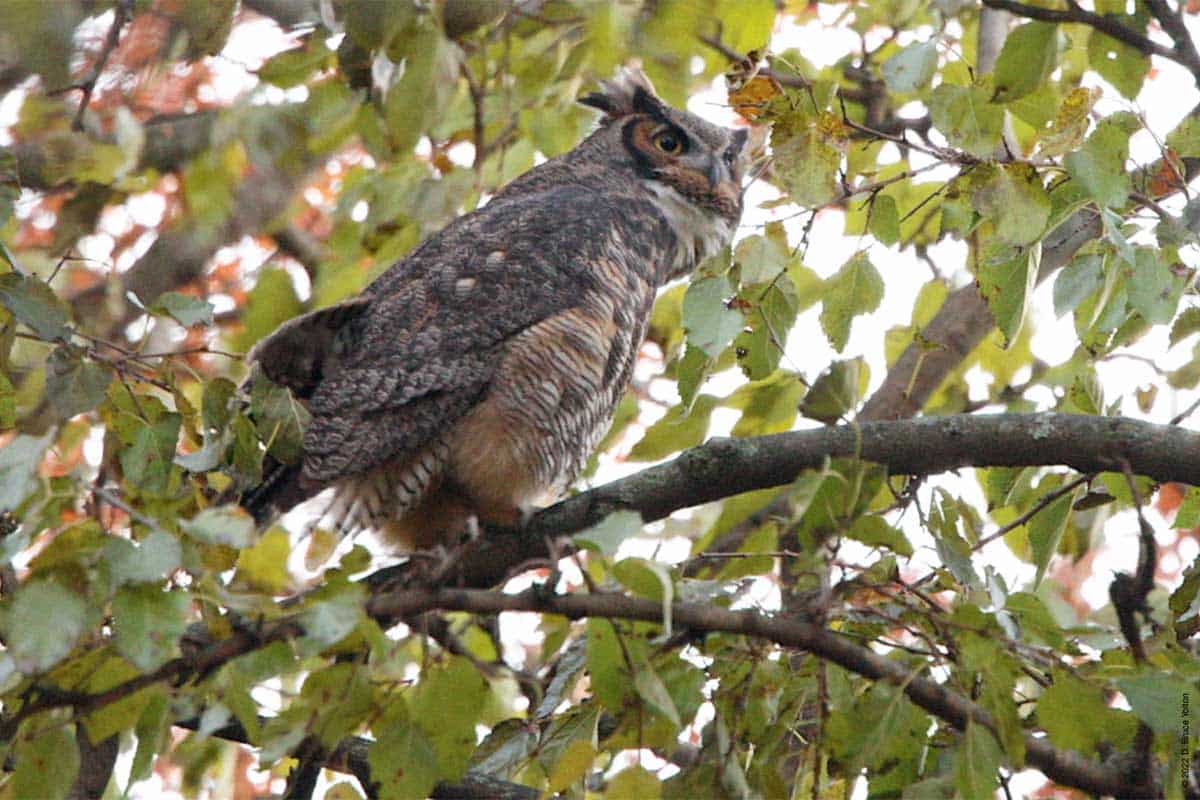The Central Park’s resident Great Horned Owl, continues to delight the park’s birders. The last few weeks have been especially nice, as the owl has been easier to watch. There are fewer trees with leaves remaining, so it has been perching lower and in more open postions.