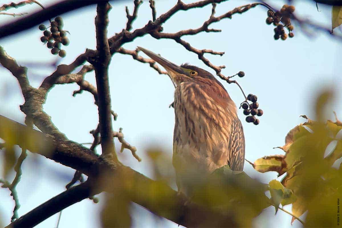 Three Green Herons were seen high in a Amur Cork tree on the southern path of the Azela Pond in Central Park on Sunday. It was an amazing sight to them high in the tree, and not alongs some shoreline. Plus three seems to be a record number all in one tree for Central Park.