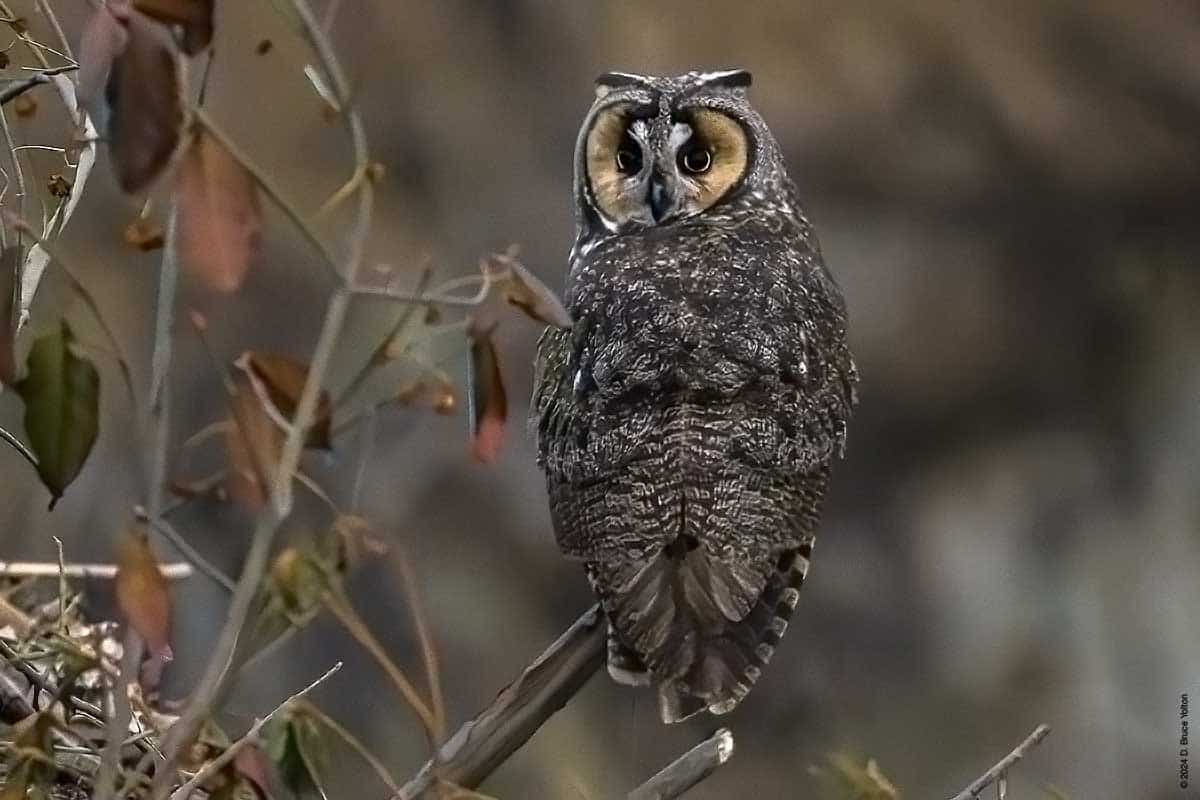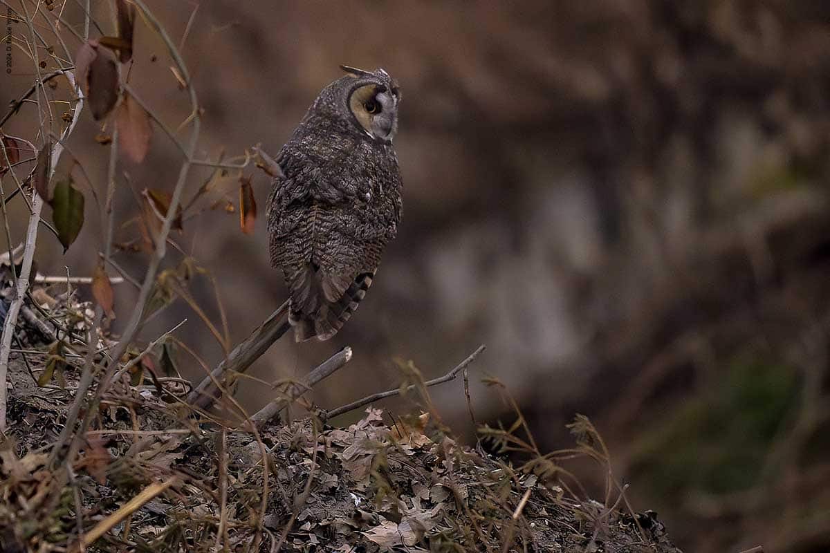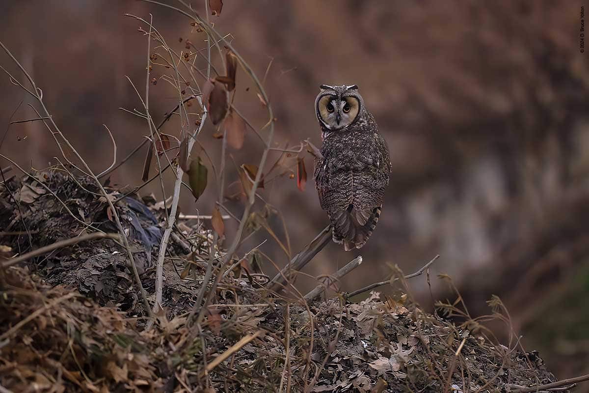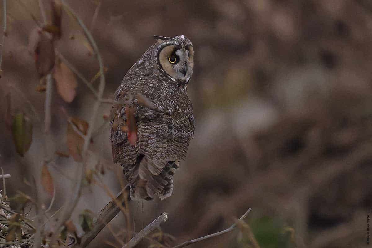 Long-eared Owls VIII, Monday 2/12/24 By D. Bruce YoltonFebruary 12, 2024February 29, 2024Owls There continued to be only one owl tonight. It who flew to the area between he compost and the nursery before flying to the ground on the hill, and then to a rodent colony be one of the dumpsters. Then the owl gave us the slip!