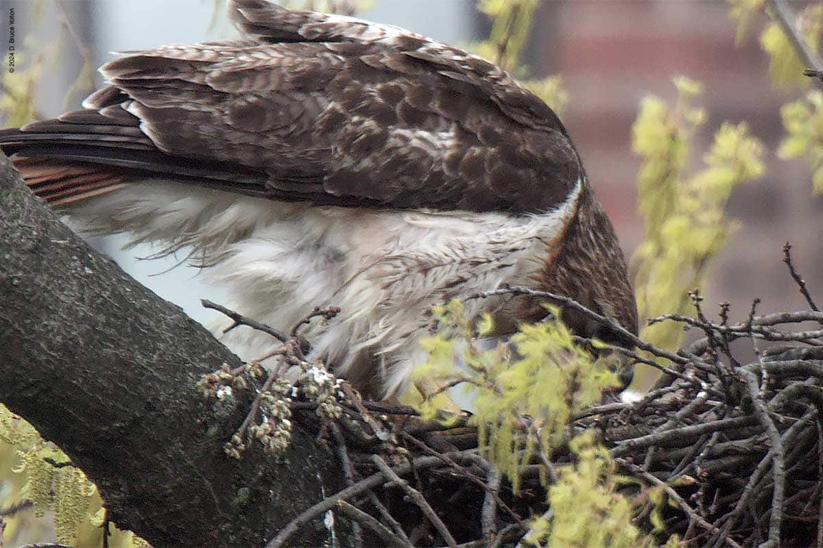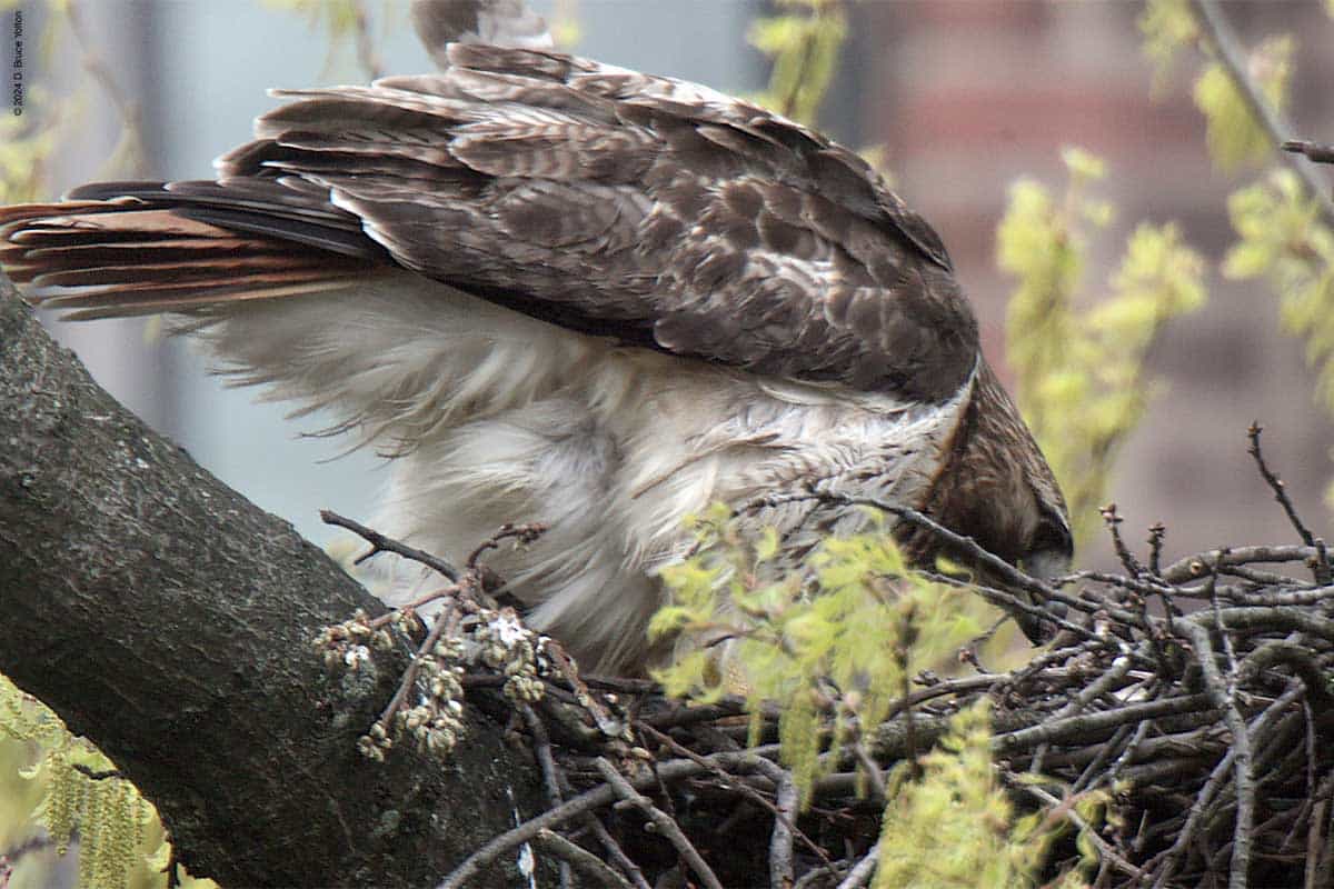 I saw another feeding of the eyass(es) on Thursday, but still can figure out how many there are. They are getting bigger and stronger, so I hope to have an answer soon. If you’re visiting I would suggest standing at the following locations. For now a spotting scope is very helpful.