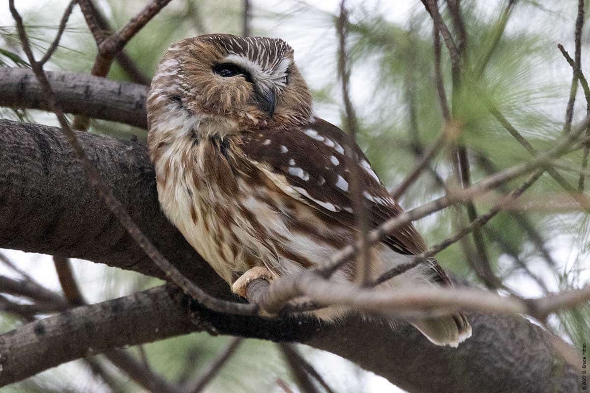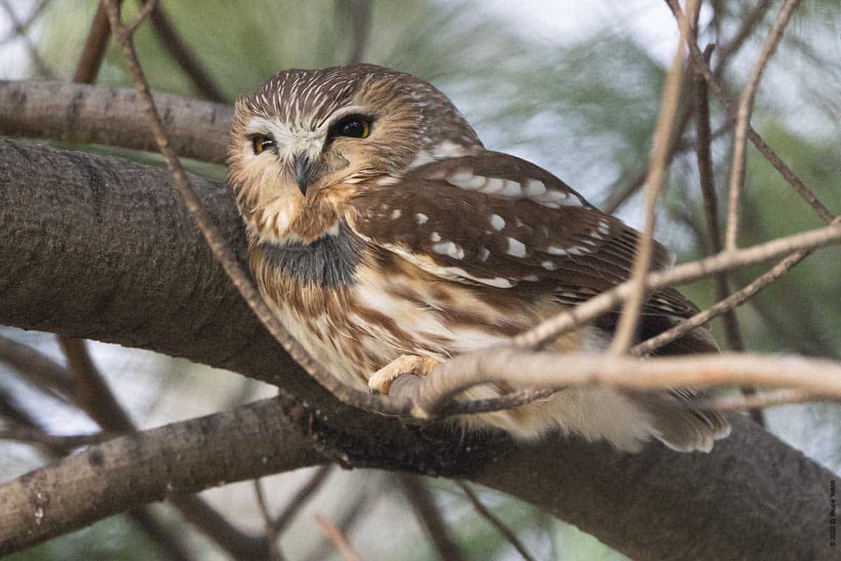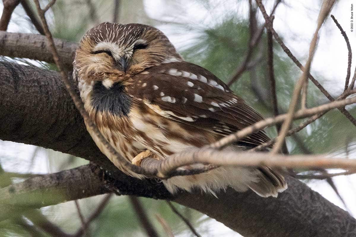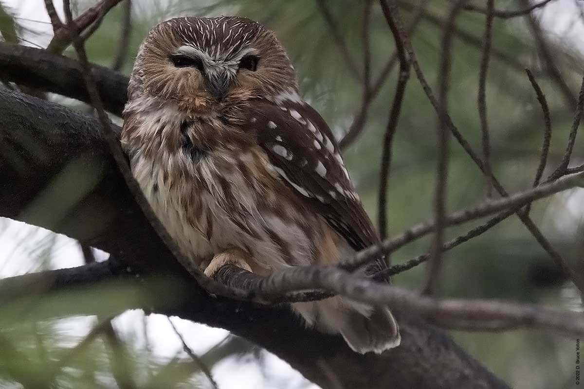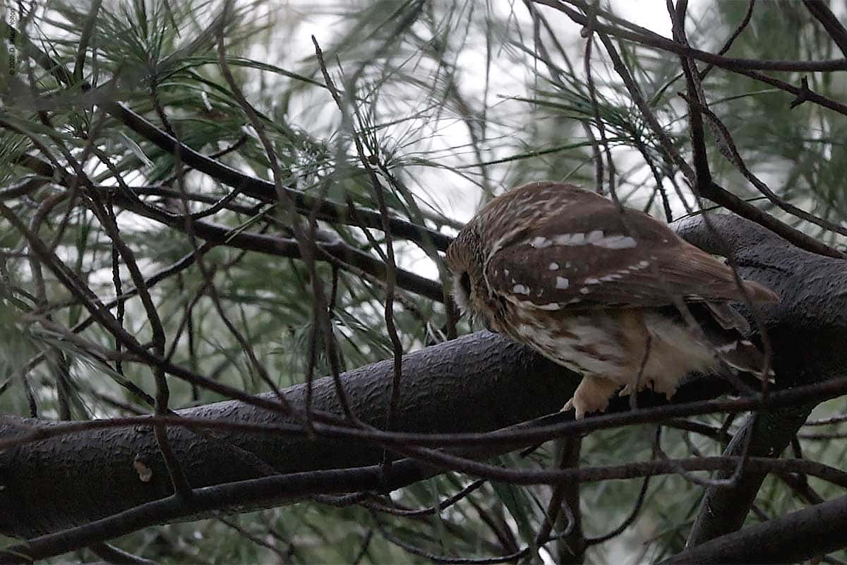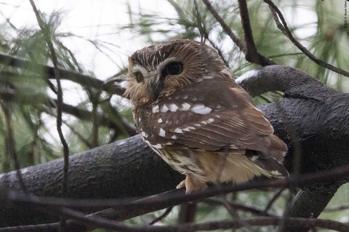 There were only a few folks watching the owl while I was there. The observers kept their distance, were quiet and enjoyed great looks at the Saw-whet. It was nice to see everyone being so respectful. None of us had to worry about waking the owl up however, as it was wide awake dealing with the wind!