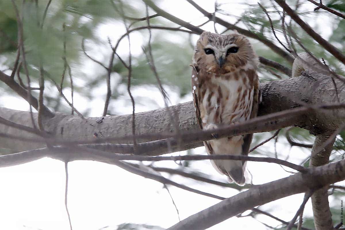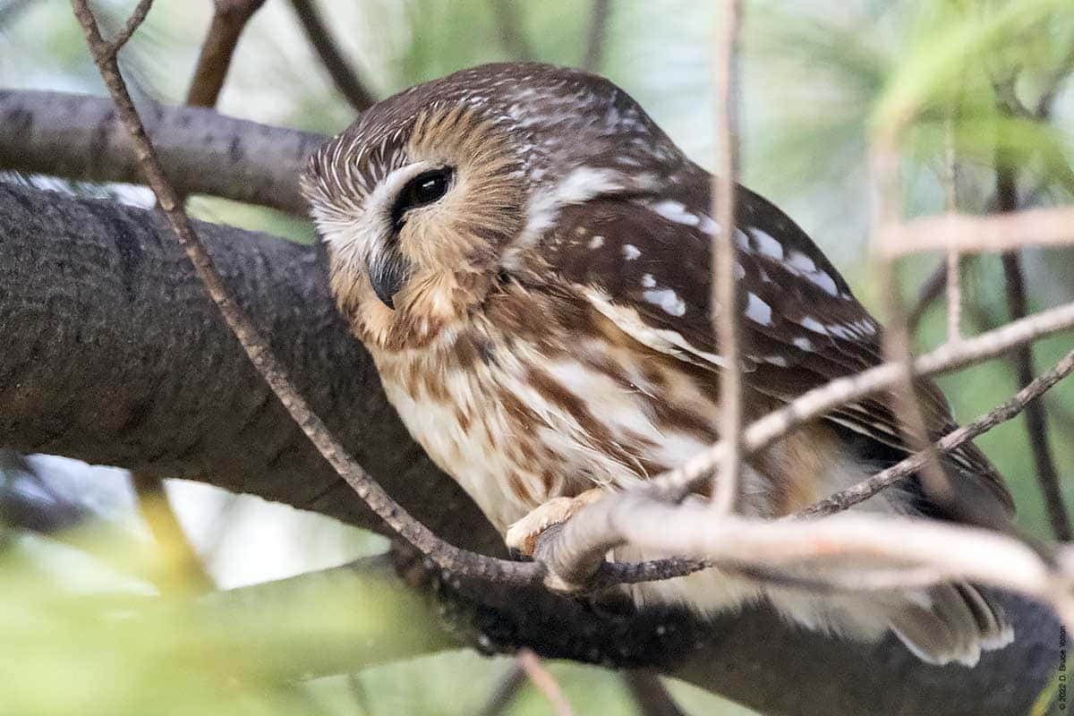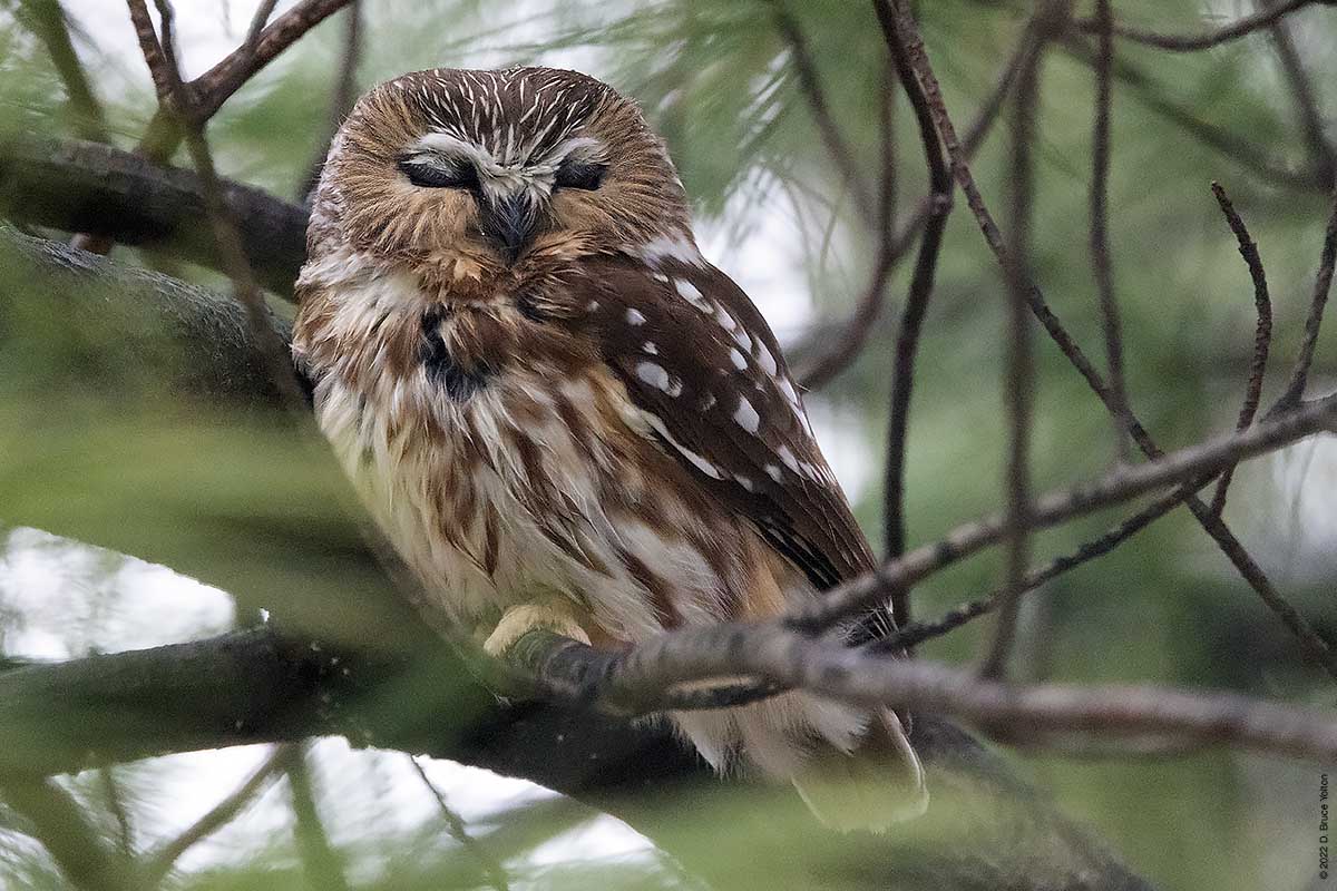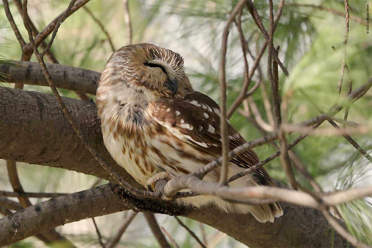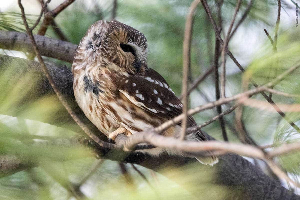 There were only a few folks watching the owl while I was there. The observers kept their distance, were quiet and enjoyed great looks at the Saw-whet. It was nice to see everyone being so respectful. None of us had to worry about waking the owl up however, as it was wide awake dealing with the wind!