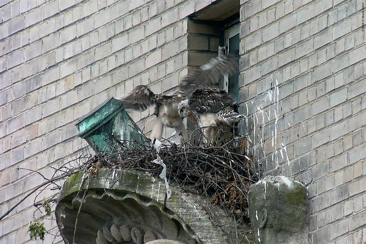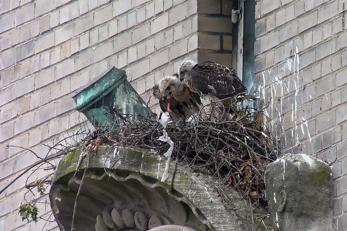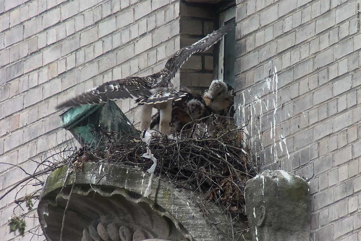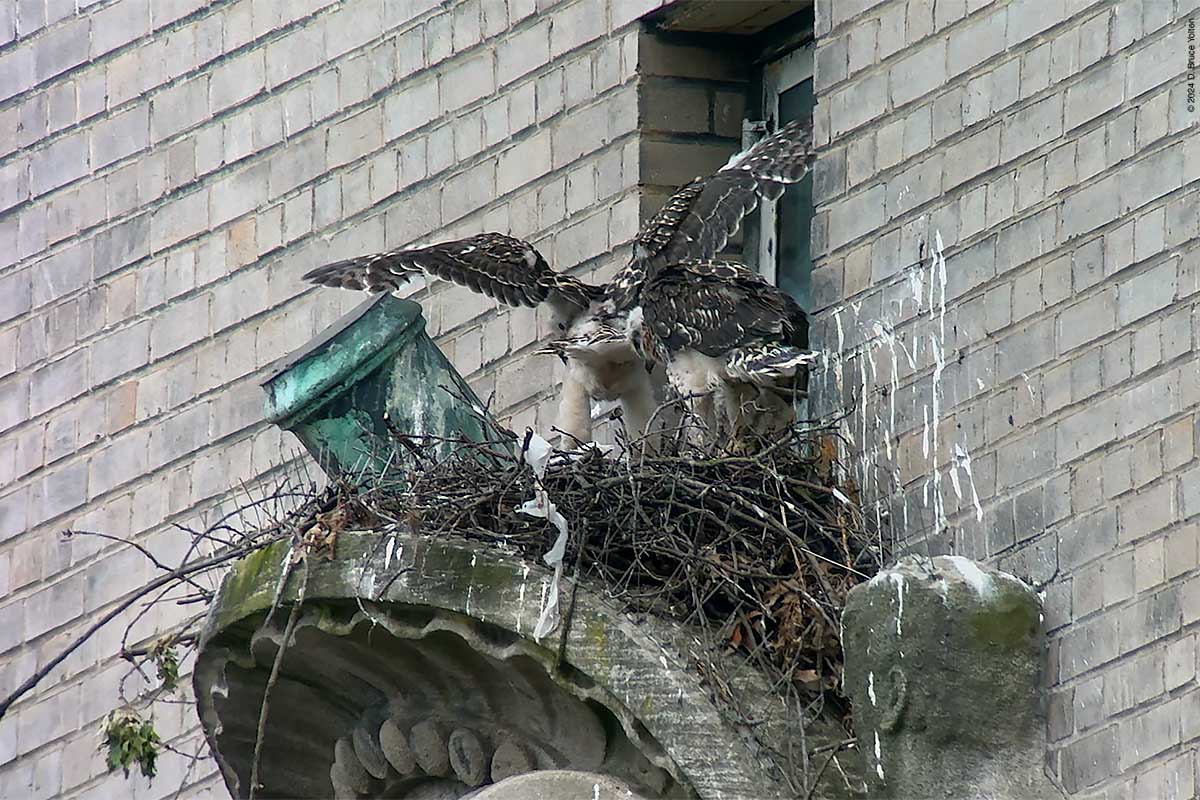 NYAC on Thursday By D. Bruce YoltonMay 18, 2024May 18, 2024Southern Central Park Red-tailed Hawks The situation at the NYAC was good on Thursday. The father brought food to the nest and all three eyasses ate. I’m cautiously optimistic that without their mother there is a good chance these young hawks will survive.