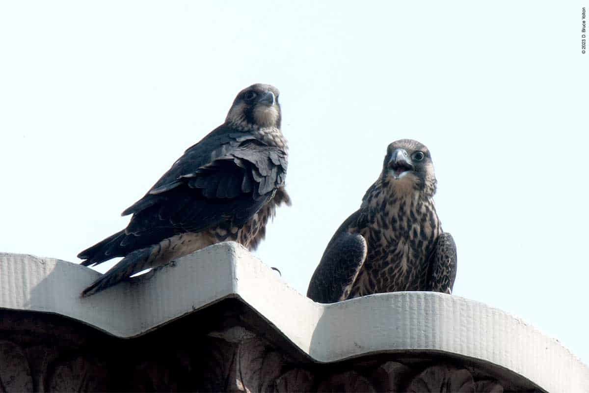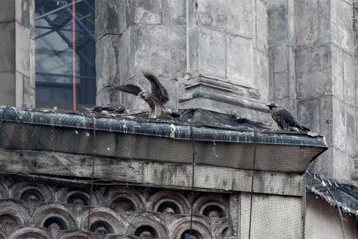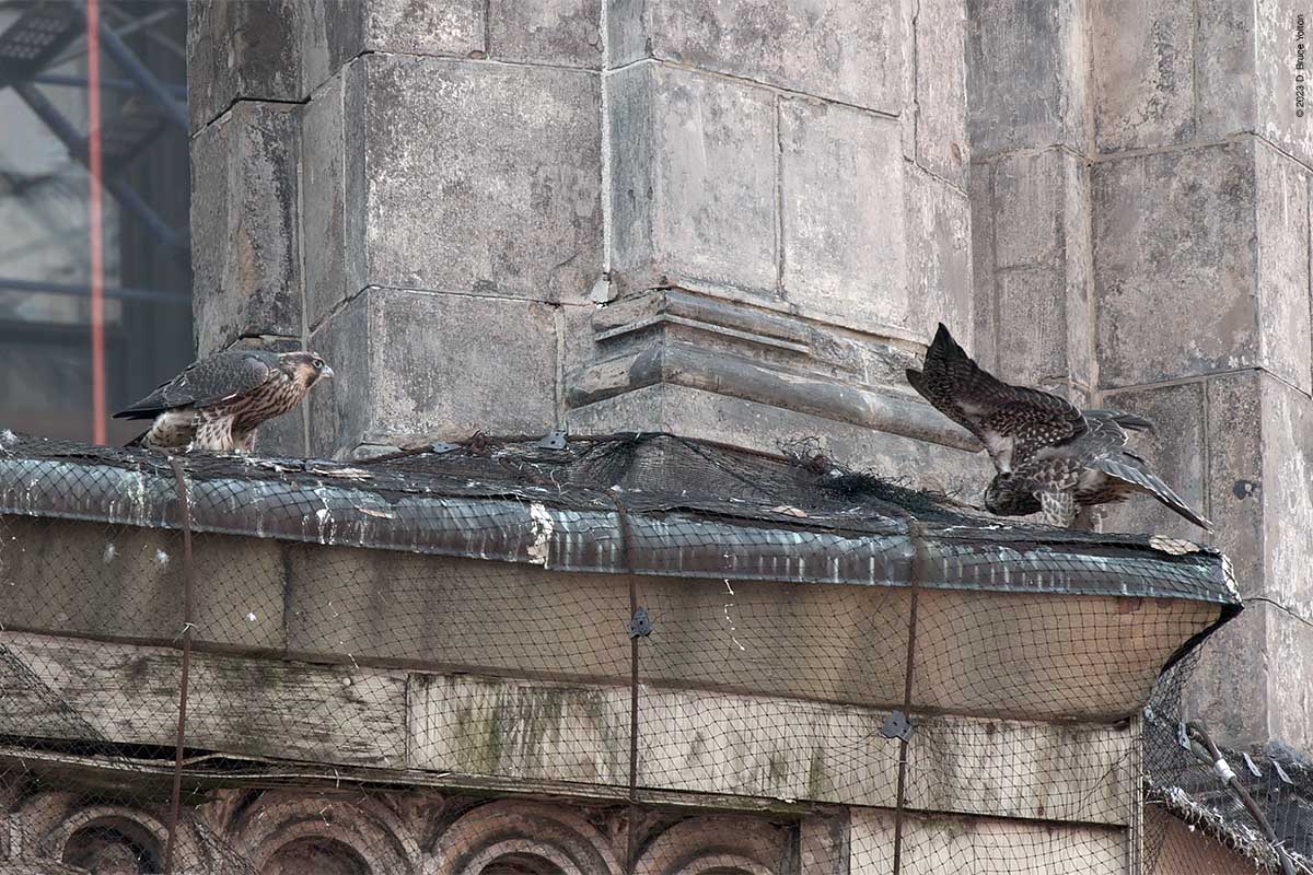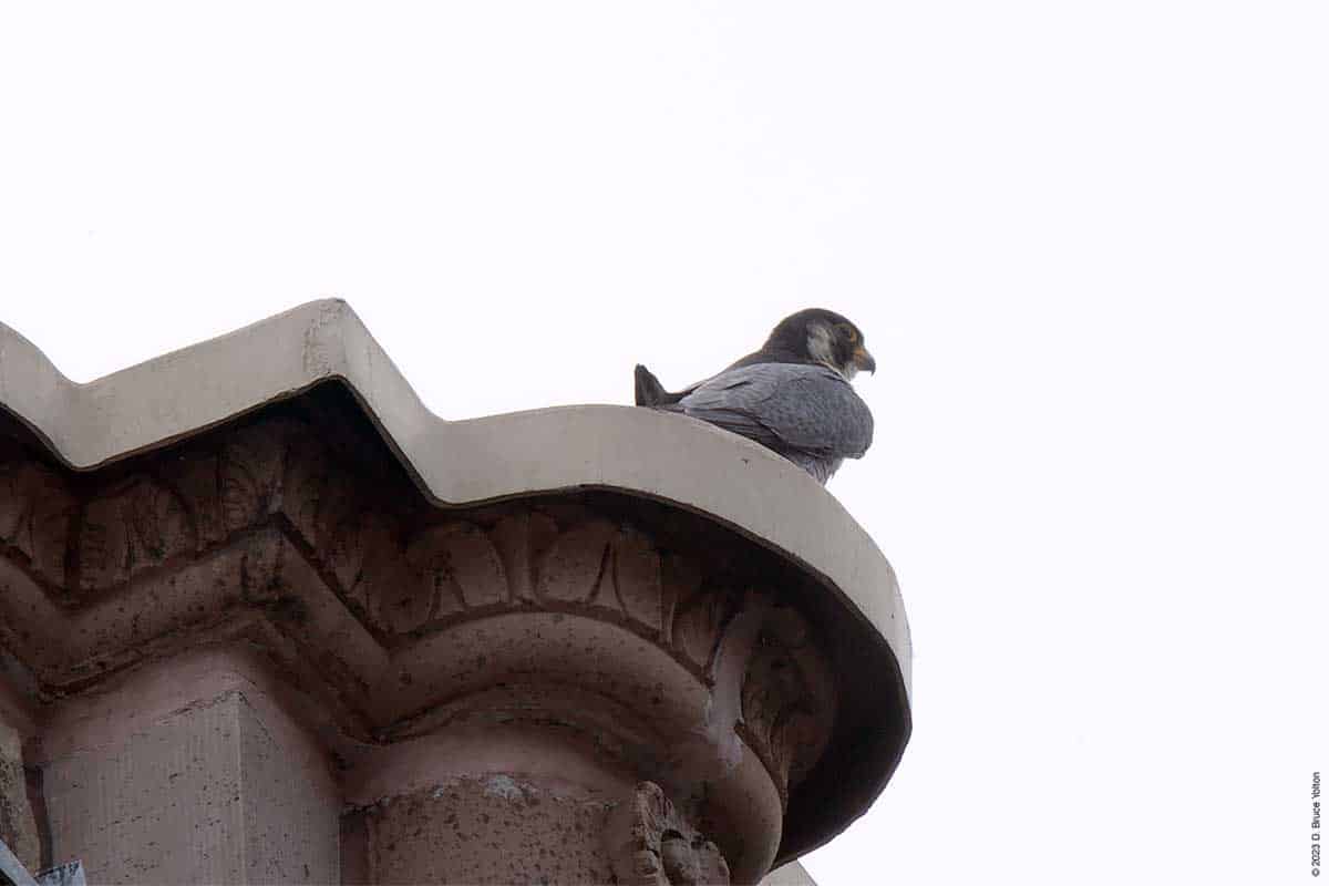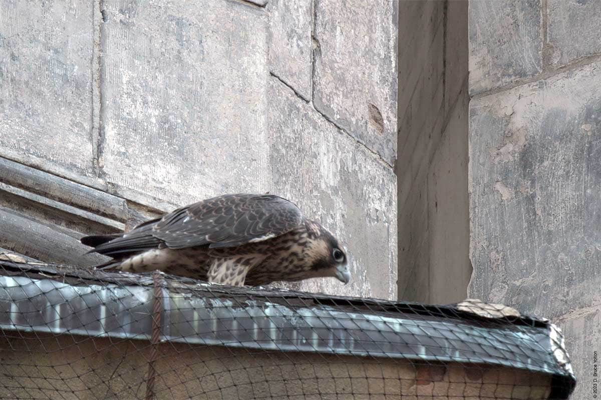 One fledgling left nest, and every so often one of the hawks on the tower would call for food, but other than that nothing much happened for a few hours.