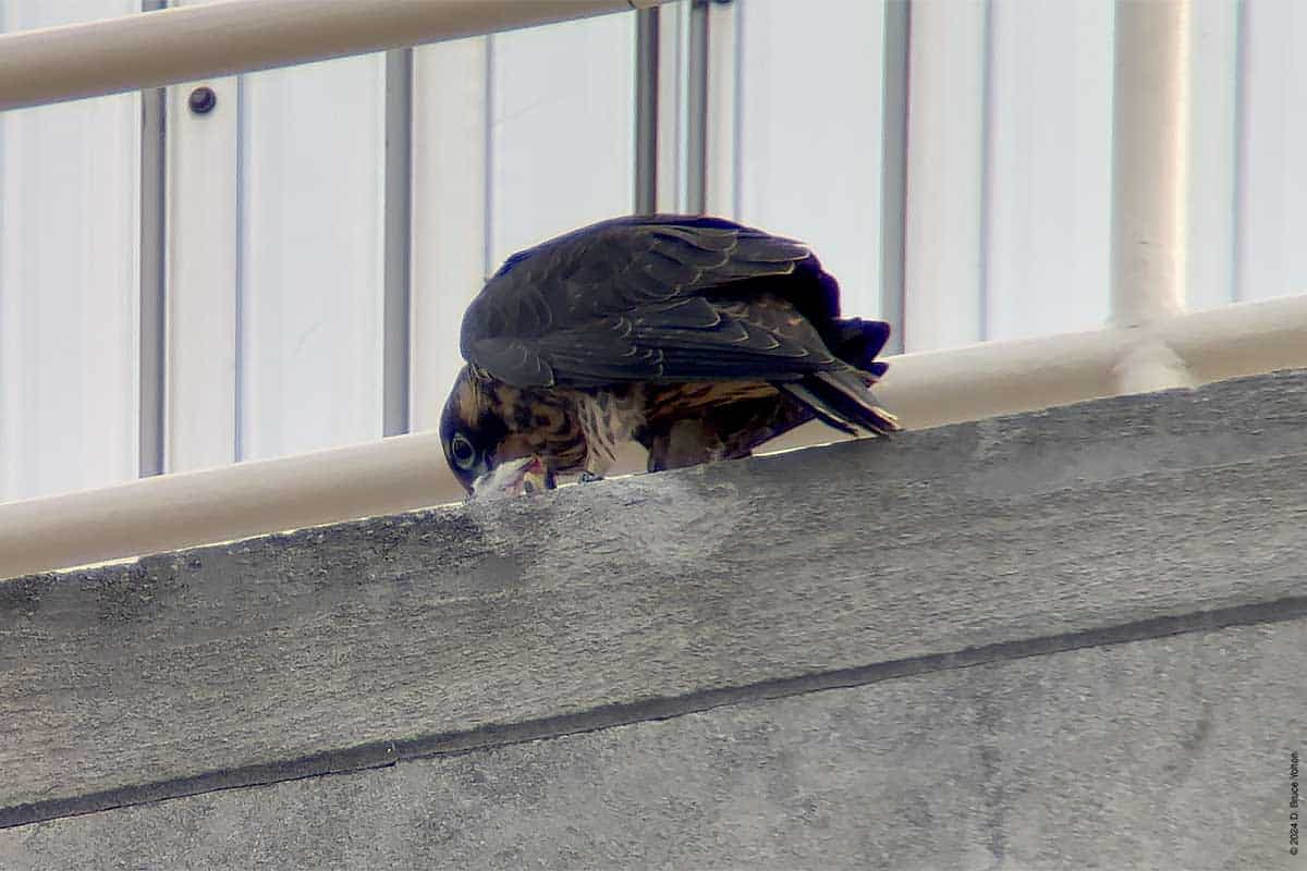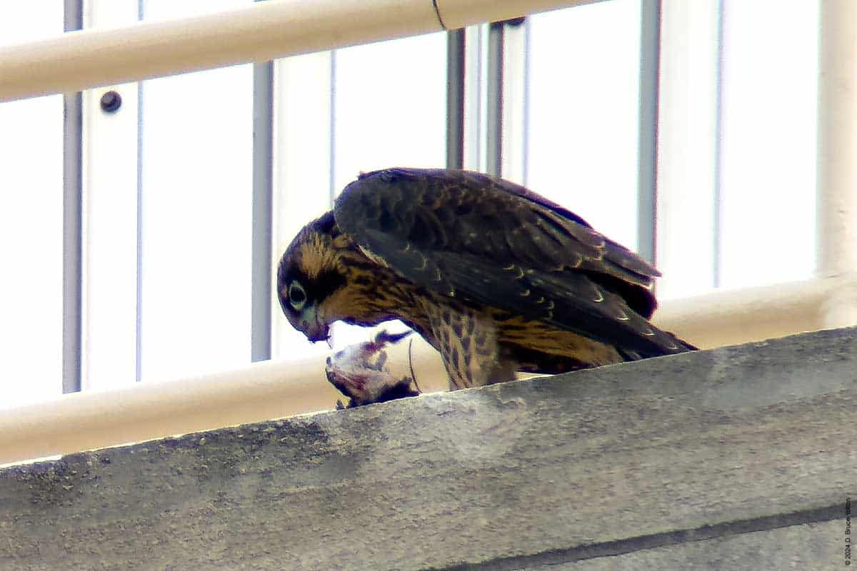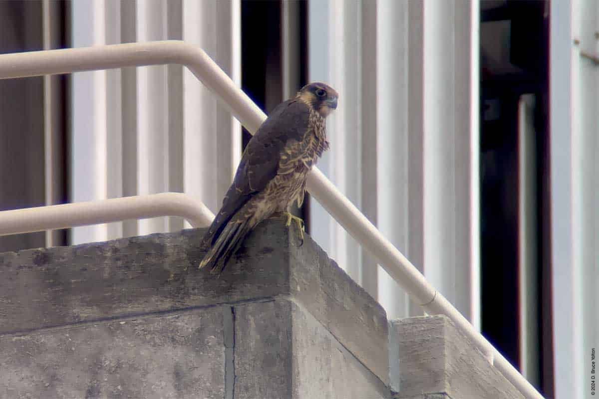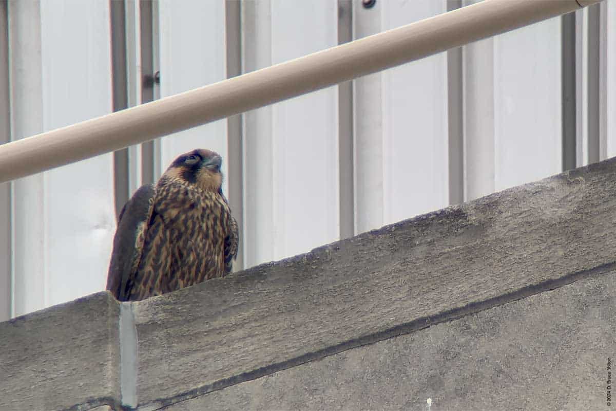 As in years past, the Riverside Church Peregrine Falcon fledglings have moved to the Interchurch Center, a block south of the church. I saw at least three of the fledglings and both parents on the building. The parents also perched on the church.