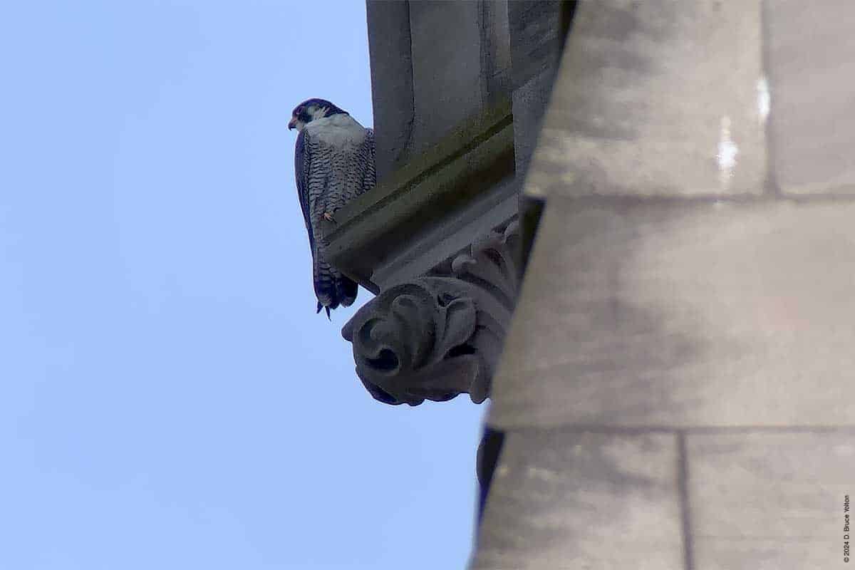 After visiting the 102nd Street and Riverside Drive Red-tailed Hawk, I took the M5 bus up to Riverside Church. I was greeted by the sounds of five hungry Peregrine Falcons. One of the parents brought food just as I arrived and then two more times. All the prey looked to be feral Rock Pigeons.